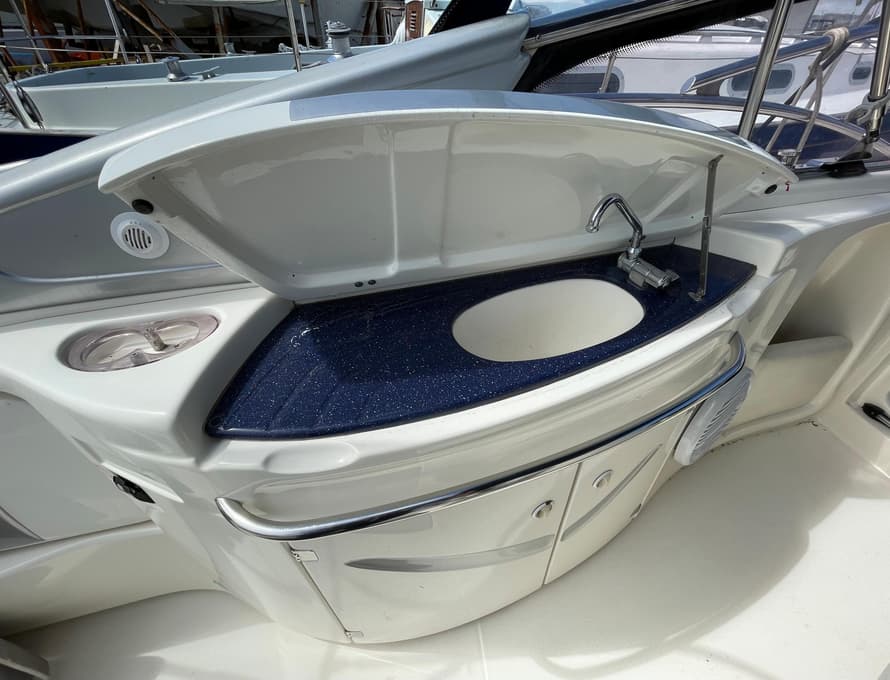 Down below she has great accommodation space and can sleep four comfortably in the saloon conversion and aft cabin and benefits from a sociable cockpit layout perfect for entertaining guests, complete with a cockpit galley and sunbed area.