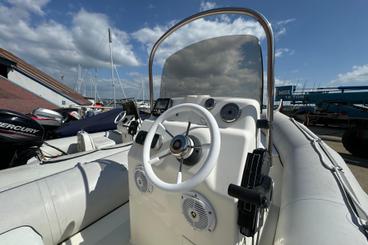 We are delighted to present this Bombard 480 RIB, perfect for first time boat owners and seasoned boaters alike, for fishing, family outings or crushing around the harbour. Benefitting from a 2021 Mercury 60hp outboard most recently serviced in February 2024 and an Indespension Rollercoaster trailer.