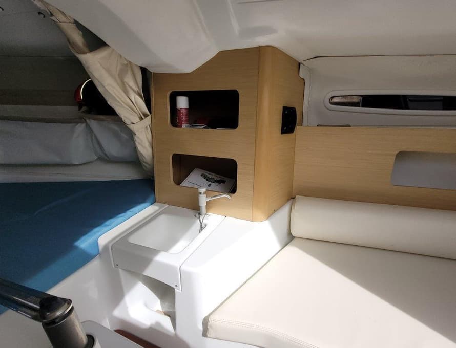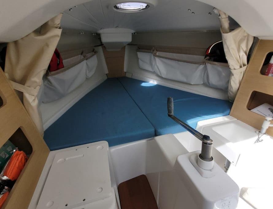 The First 21.7 is the total embodiment of manufacturing technological know-how: buoyancy foam sections throughout the hull to make it unsinkable, structural inner mouldings, pivoting cast iron keel, injection moulded deck (for greater strength among other benefits). The First 21.7 is a small high performance cruiser that is safe and family oriented with 4 berths.