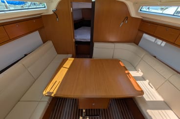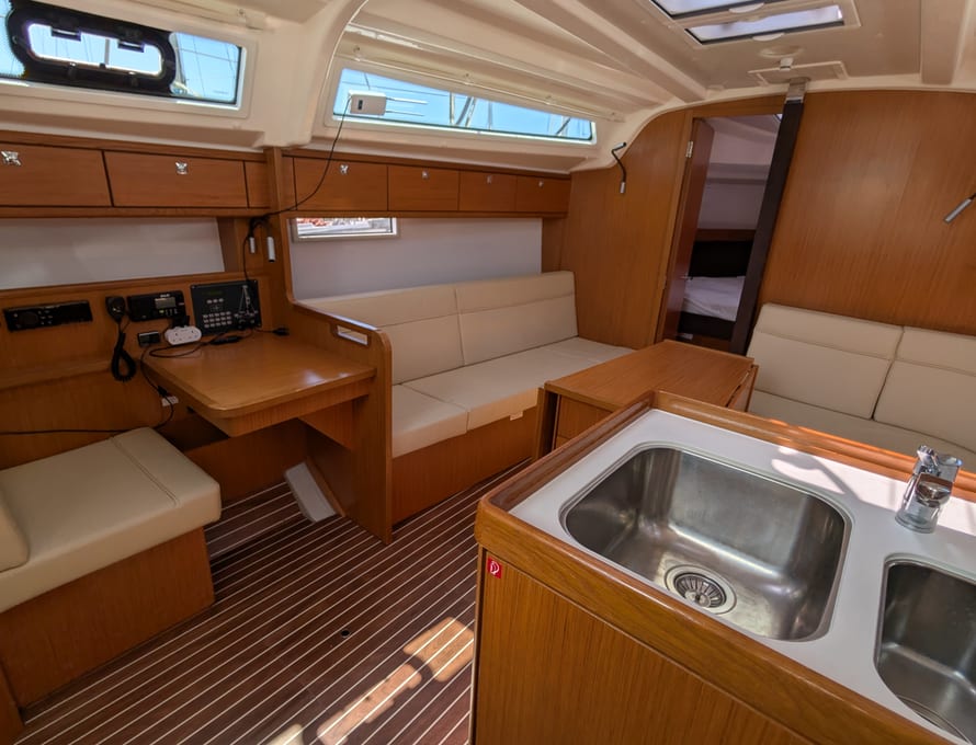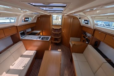 Saloon with two long sofas on starboard and port side (with berth conversion)