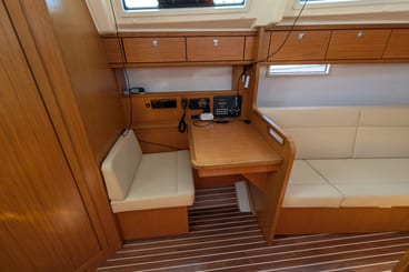 Dual USB; Multi-Zone technology, at chart table Radio with DVD player function and colour display with 2 speakers in saloon and cockpit, remote control in cockpit, connected with NMEA Network