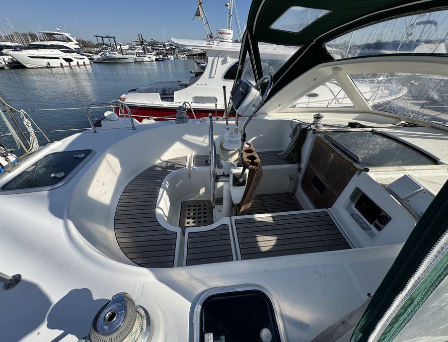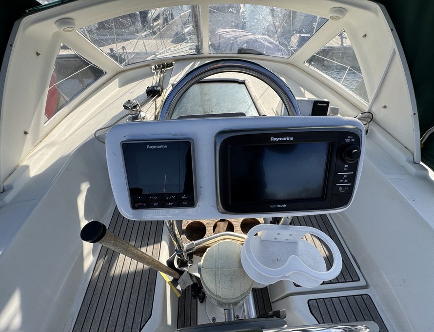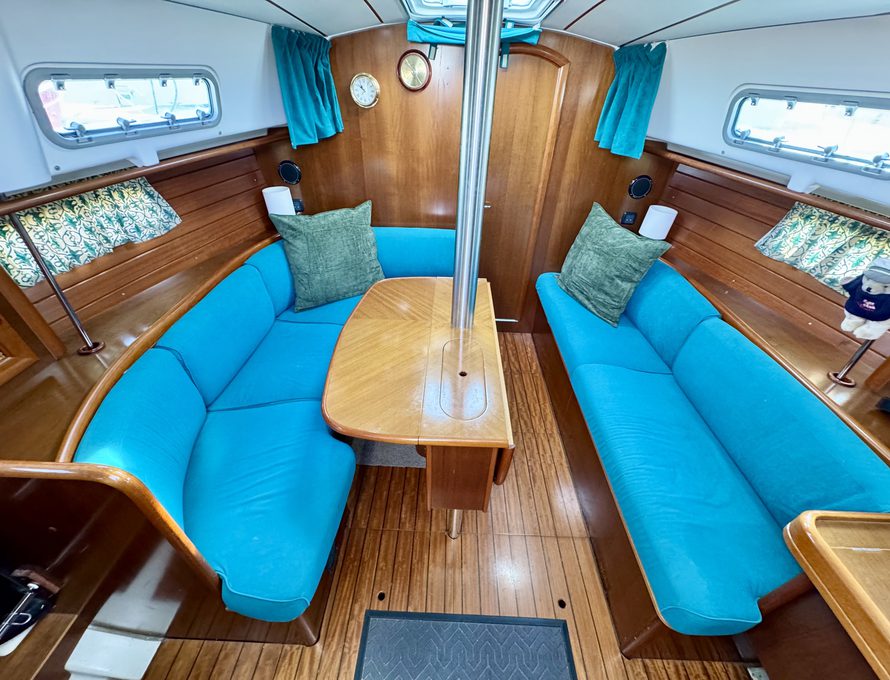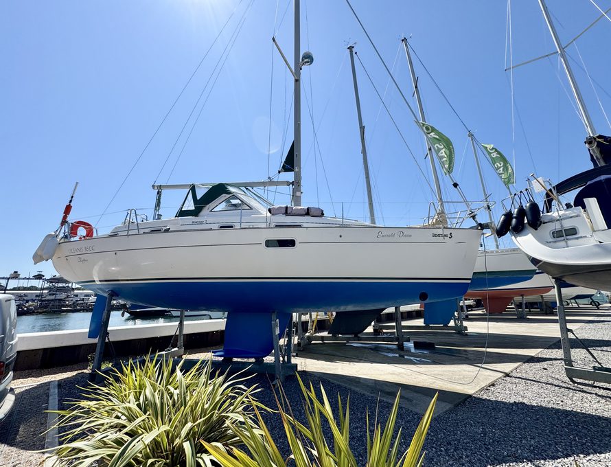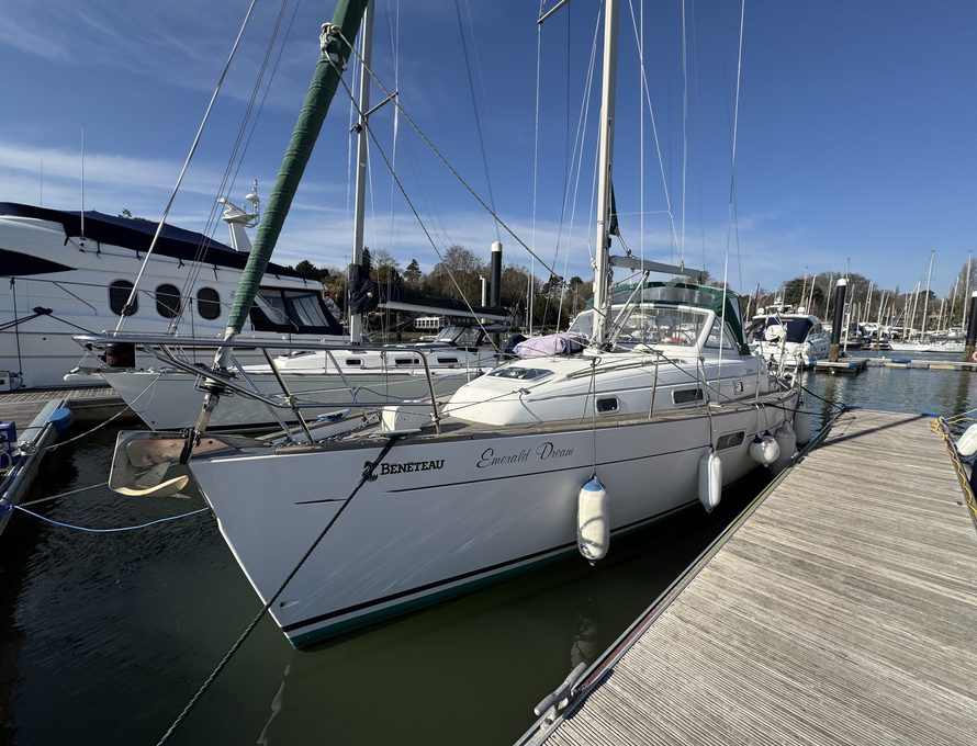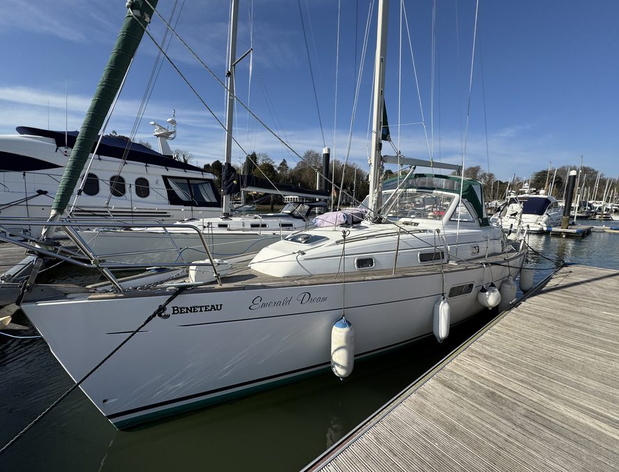 We present Emerald Dream - a beautifully presented Beneteau Oceanis 36 Centre Cockpit. A practical and well-equipped cruising yacht designed for comfortable sailing and extended cruising for the whole family. The centre-cockpit configuration gives a feeling of security and features wheel steering on a pedestal with folding table, wide, teak-laid decks, a useful sugar-scoop stern / bathing platform and ladder. There is a fixed windscreen with sprayhood extension. Set up for short-handed sailing with all lines led aft, self-tailing Lewmar winches, and an electric anchor windlass. Below deck, the U-shaped saloon seating with a folding dining table and the well-equipped galley provide a functional and comfortable living space. The aft cabin features an offset double berth with sofa and dressing table, direct access to the head / shower compartment, while the forward cabin features a good-sized V-berth, hanging locker, and storage.