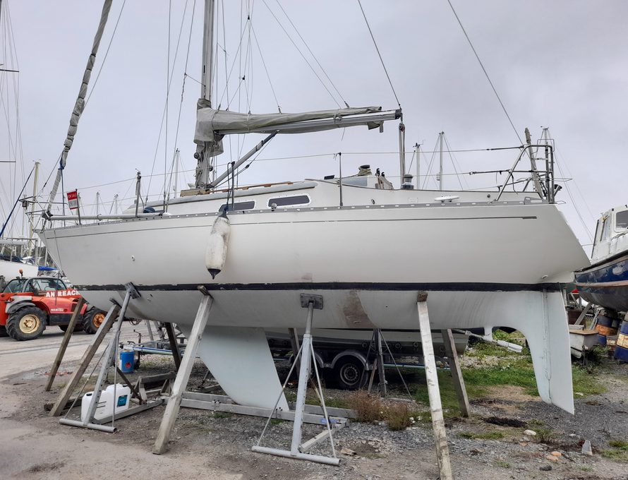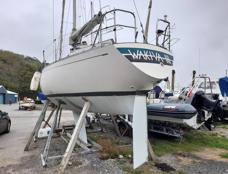 Wakiva III, a Carter 30 with a lovely history. Built by Northshore Yachts in 1985 and fitted out by the first owner to a high standard for his own use. The Carter 30 was designed by Dick Carter based on his original racing design but later adjusted for a fully-fitted interior. She is a good fast cruiser with excellent handling. A two owner boat this vessel has been well cared for during its lifetime. Cruised locally by a small family, hull antifouled and engine filters changed diligently this boat comes with a huge sail wardrobe and a great safety package. Currently ashore at Gallows Point, Beaumaris. Viewings strictly via appointment!