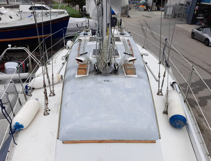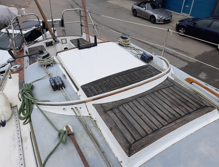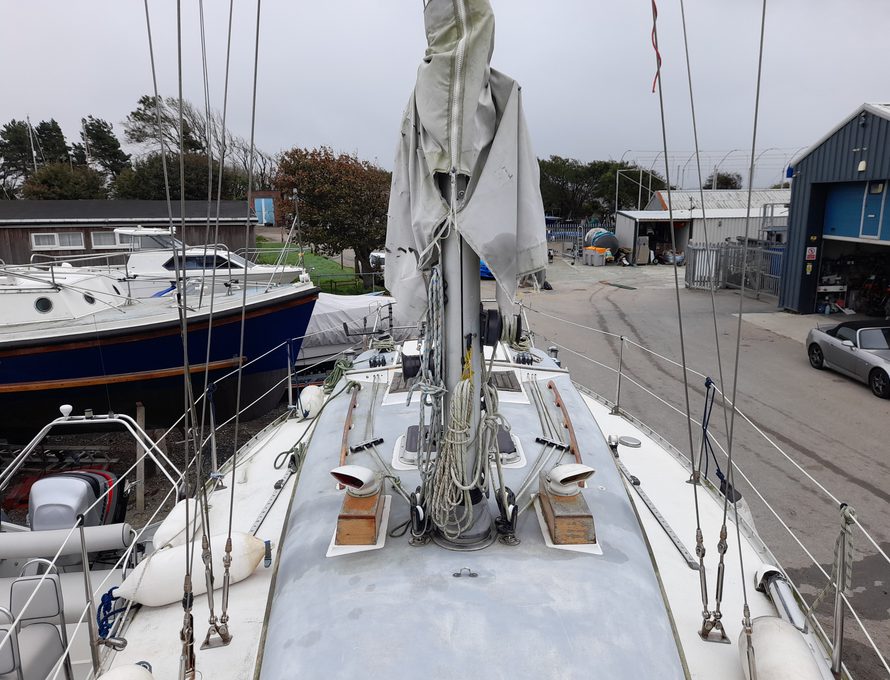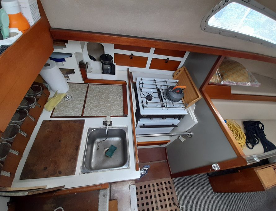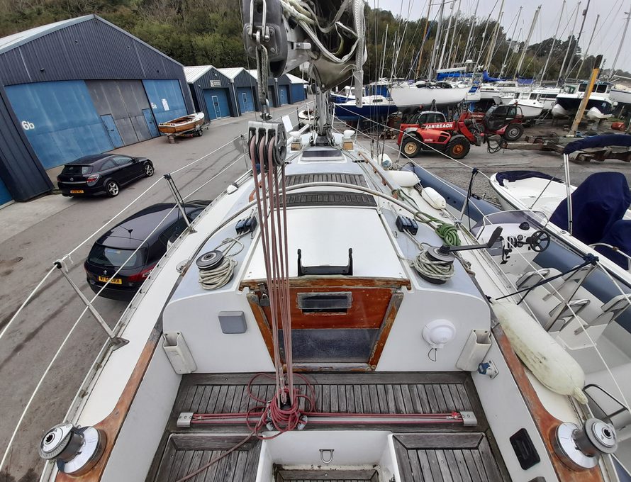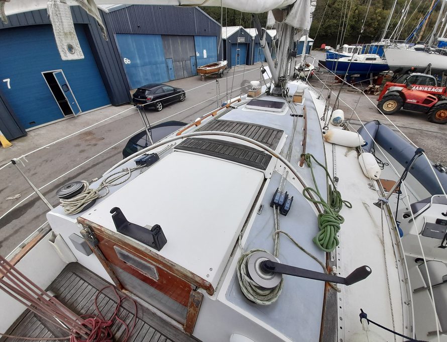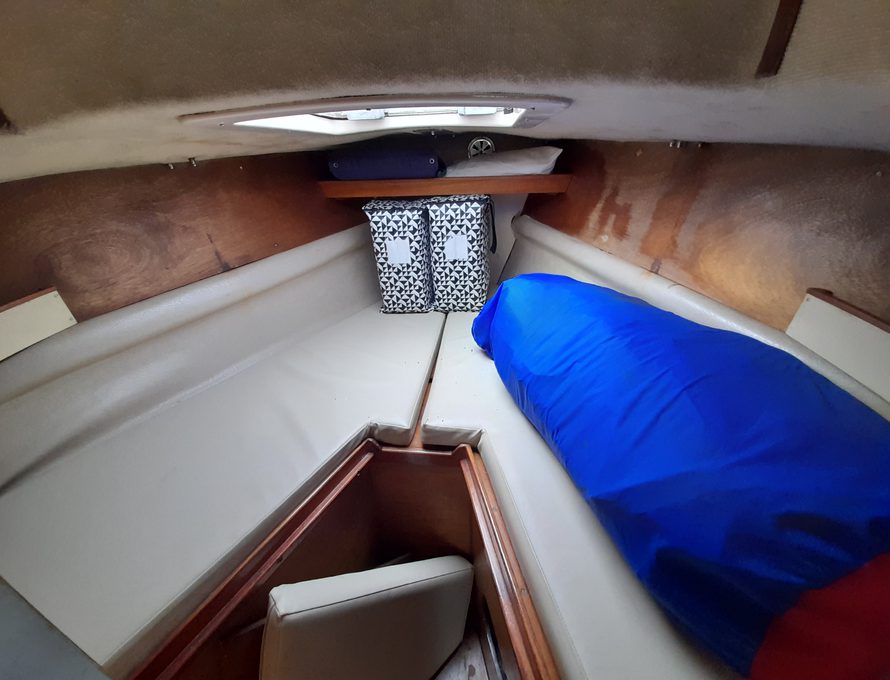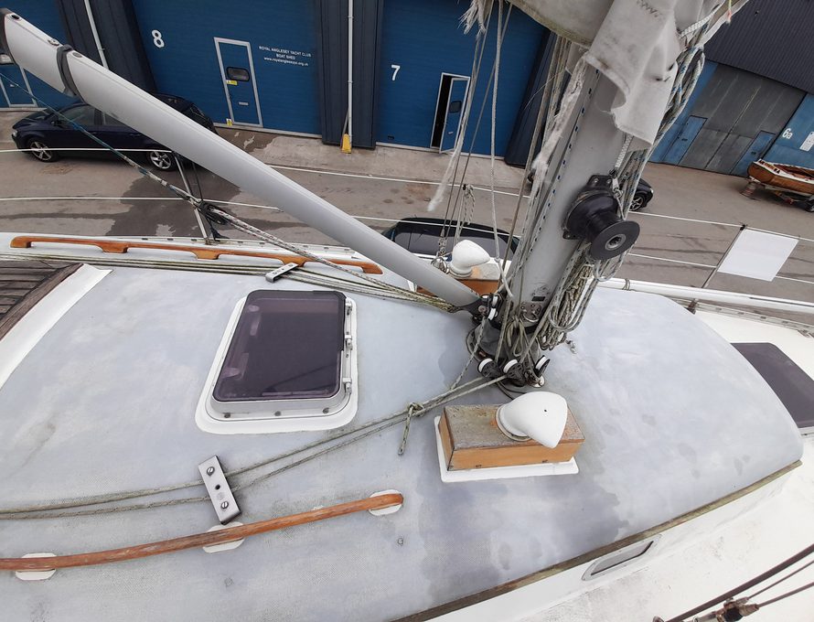 She’s easy to sail. We bought her from her one previous owner who was a local boat builder and mechanic. She’s been cared for and we dried her out and antifouled with 2 year self-polishing antifouling last year (see drying out picture), so she’s good for this season.