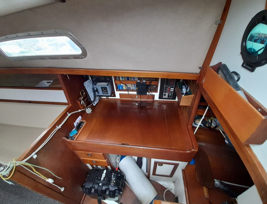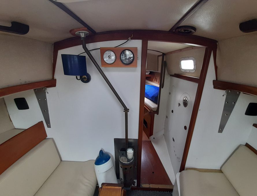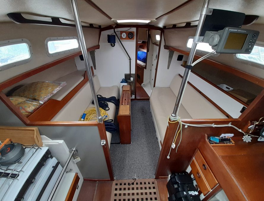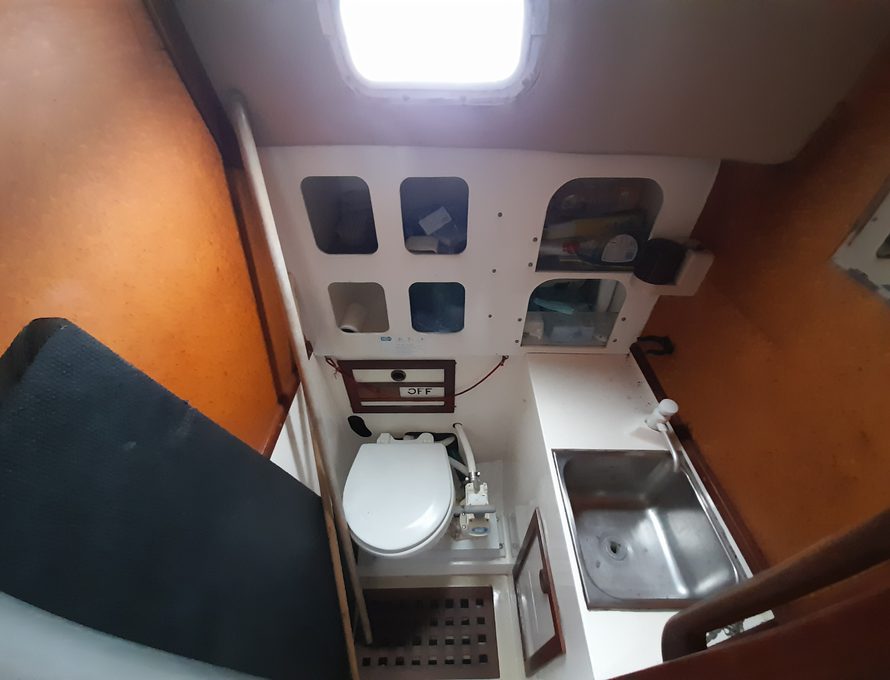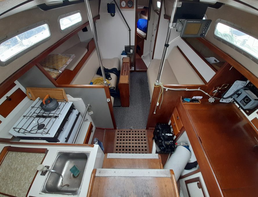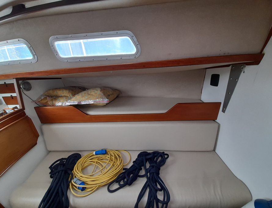 Offering five berths but comfortably four in double V berth, two single settee berths and one pilot berth to port side.