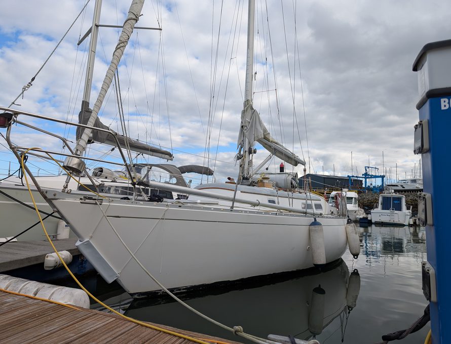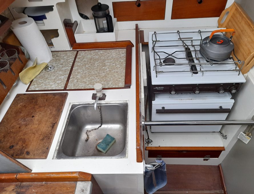 We’ve cared for the engine, changing the oil, filters and anodes regularly. We’ve treated the fuel we use and always warmed the engine before making way. She has a full sail wardrobe, but we’ve only sailed her in fair weather as a family, so we’ve only used the main and genoa.