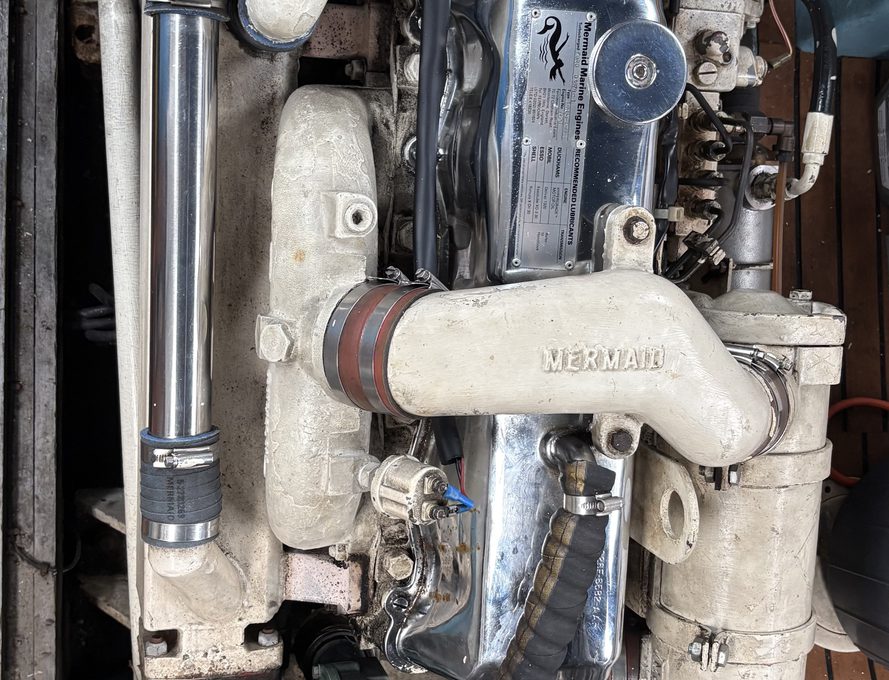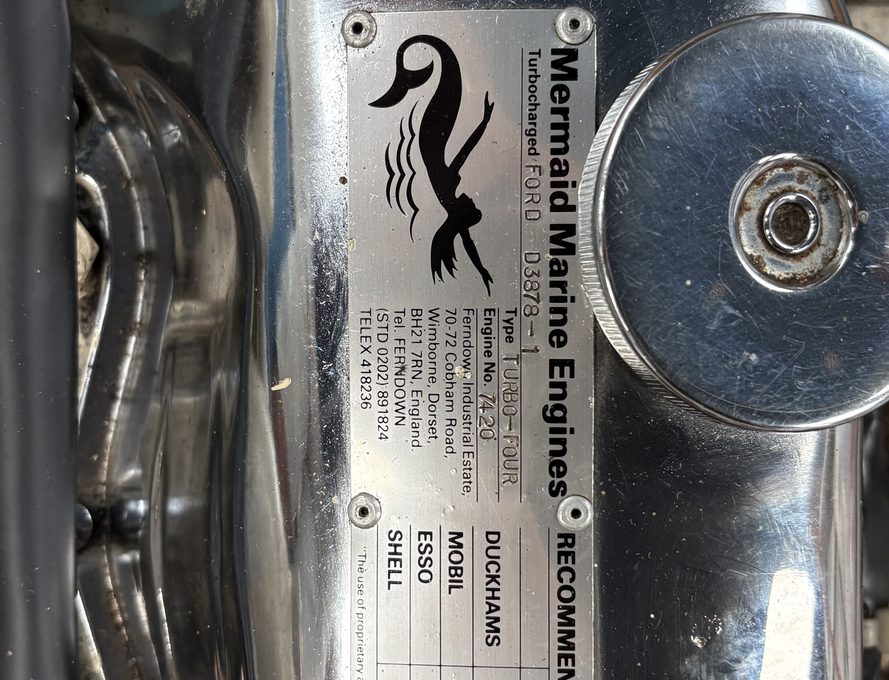 Single Ford Mermaid 150hp Turbo 4 4-cylinder diesel engine (1984), Shaft drive to fixed pitch 4 bladed propeller.