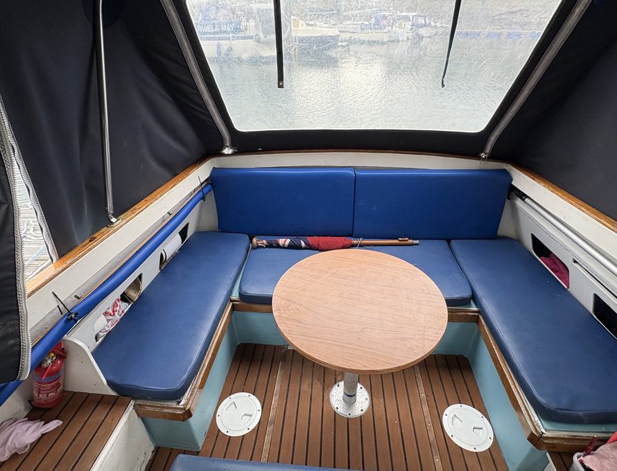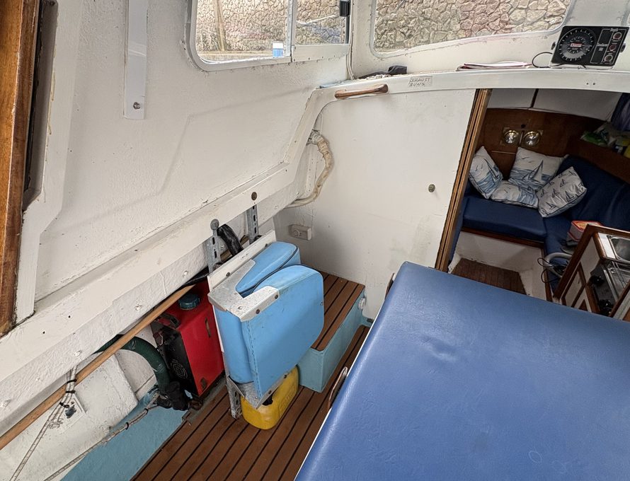 Cockpit with GRP cockpit sole with non-slip deck covering, hatches to access the stowage, bilge and stern gear.
