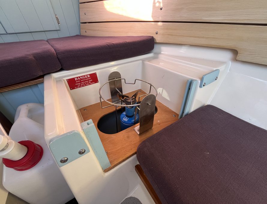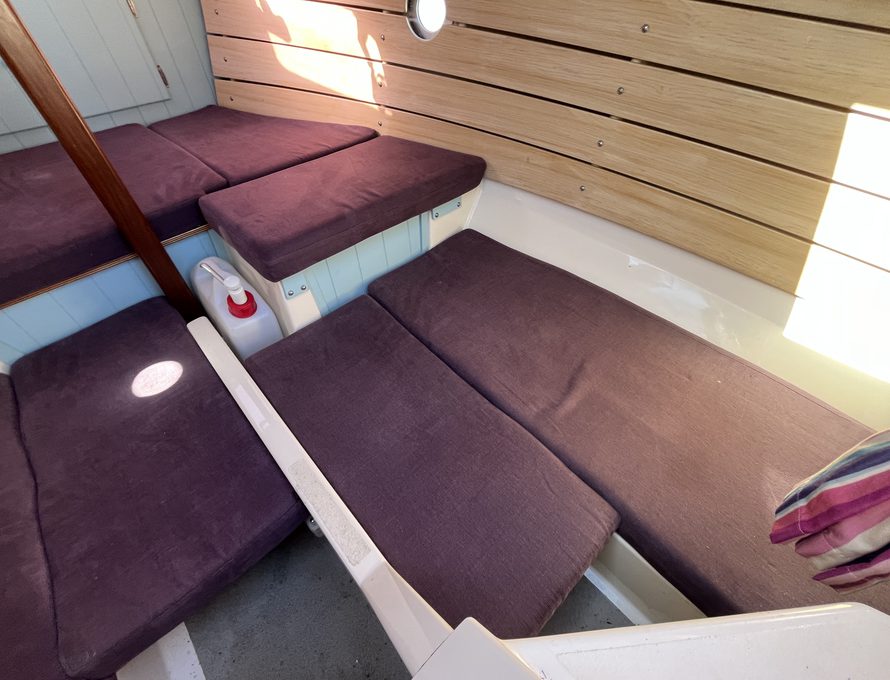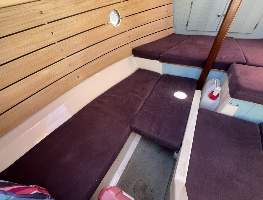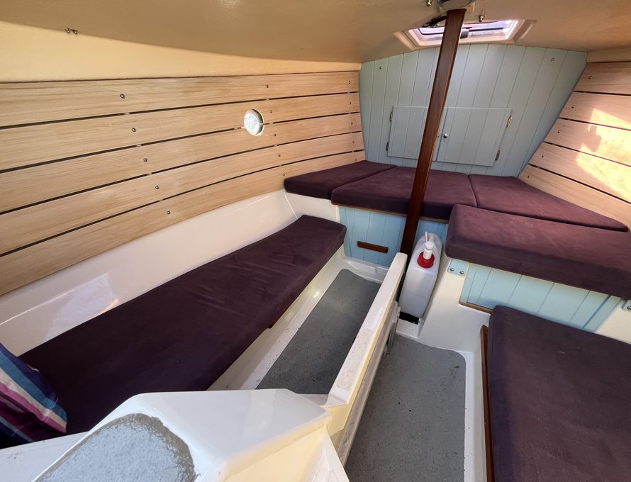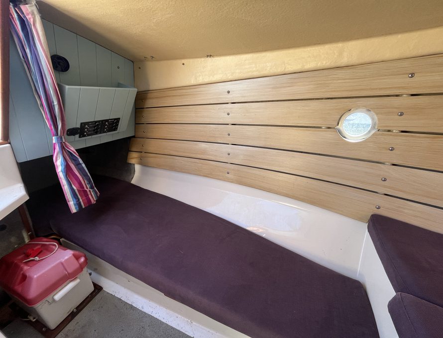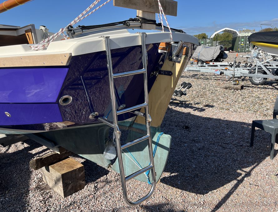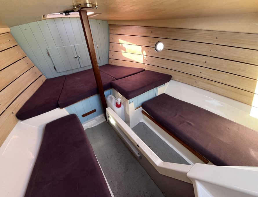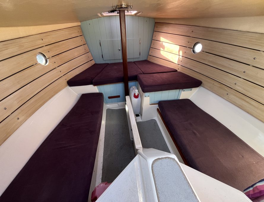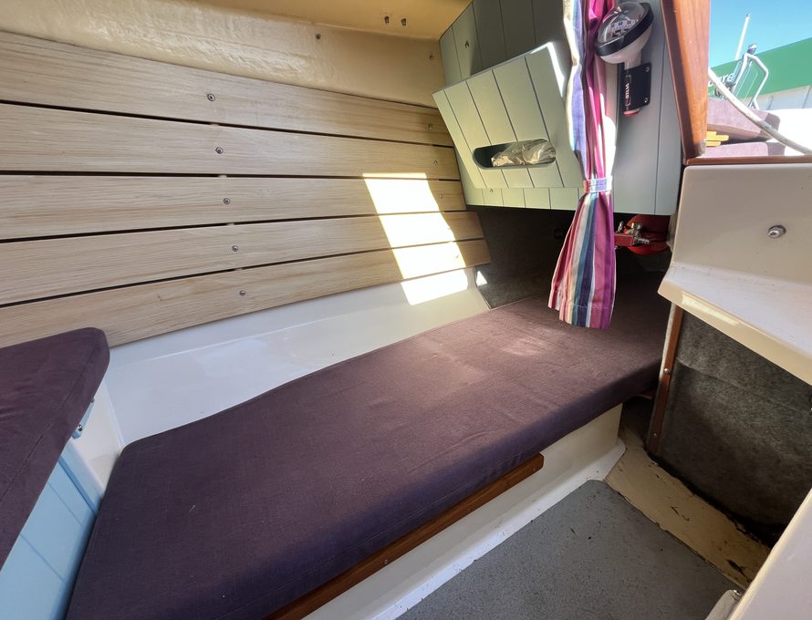 The Shrimper’s reputation for seaworthiness, ease of handling, and shallow-draft versatility makes her ideal for coastal cruising, estuary exploration, and family day sailing alike. Purple Limpet features the desirable inboard Yanmar diesel engine, providing reliable auxiliary power and effortless manoeuvring in harbours and marinas. She is currently ashore on her sought after combination road trailer and launch trolley.