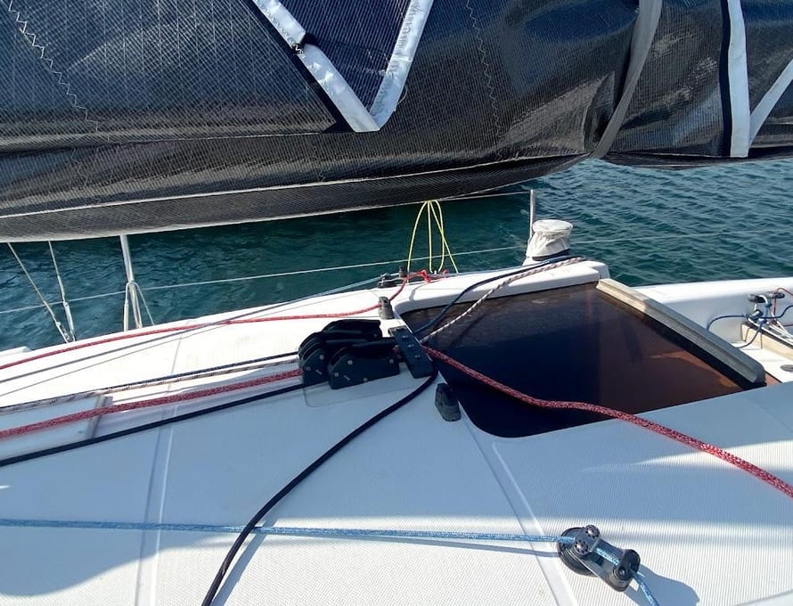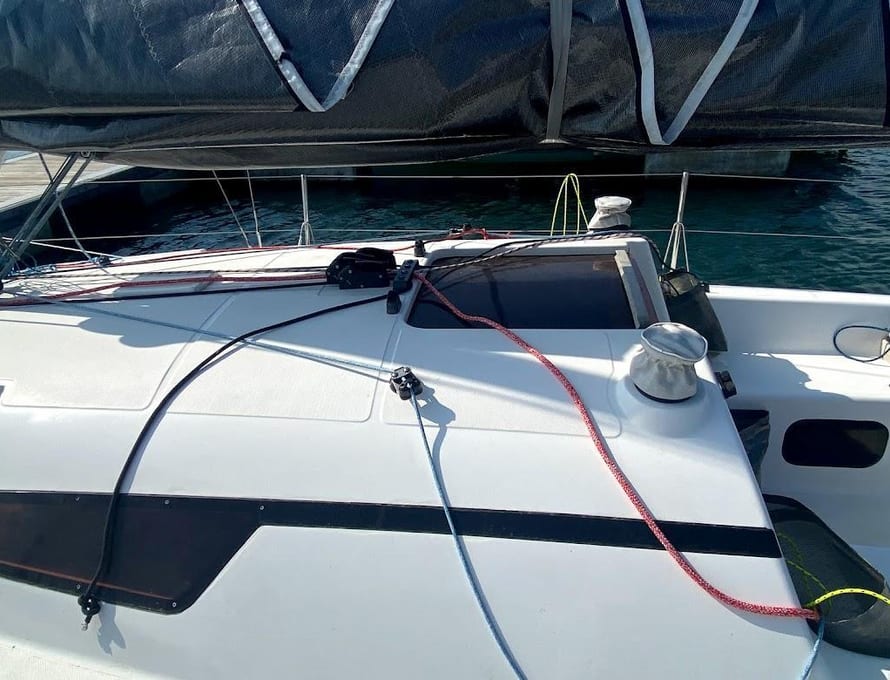 Rope clutches centrally located on coachroof
