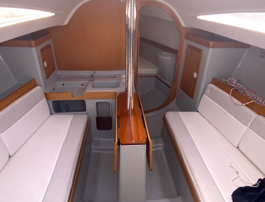 The Carabelli 257 was designed by Horacio Carabelli from Brazil. The vessel combines Great sailing performance, with an IRC rating of 0.955 and a spacious and comfortable interior. Can be sailed singlehanded or competitively by two keen sailors, while at the same time being perfect for a small family. This example has been stored inside since arriving in the UK and benefits from upgraded hardware and systems making this in effect a 'new 'boat.