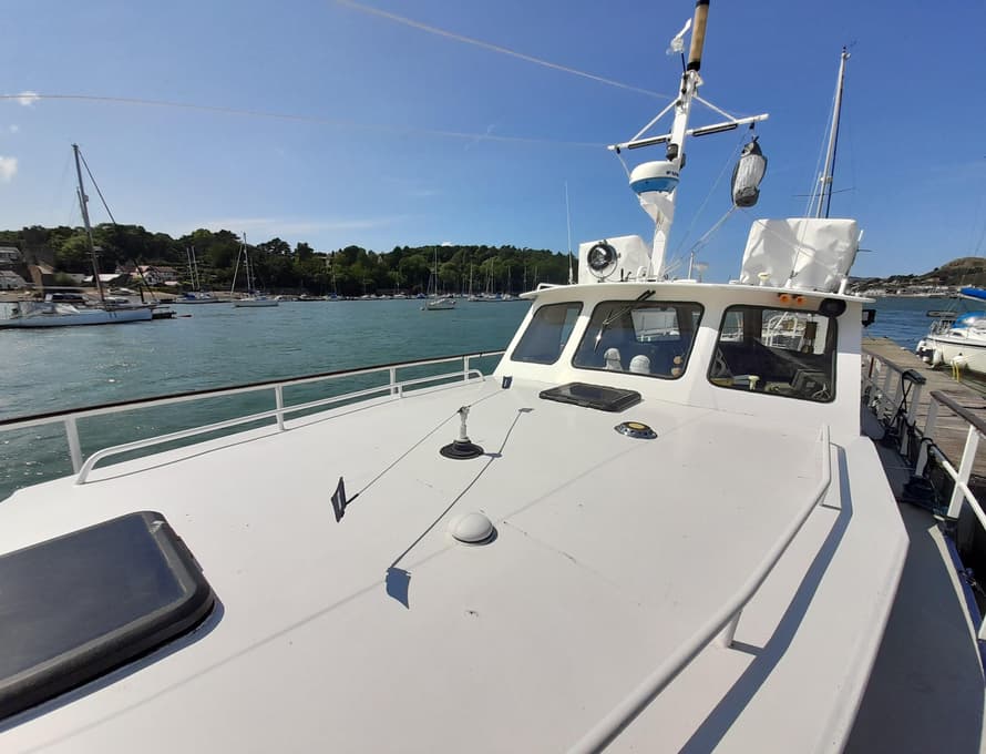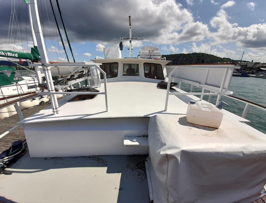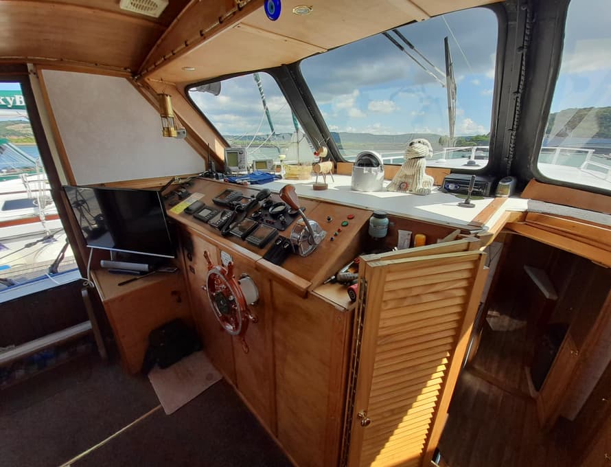 The interior and exterior steels have been professionally grit blasted and epoxy primed, finished with two-pack polyurethane. The topsides are painted in blue enamel, and the bottom is painted with antifoul. The interior is finished in grey semi-gloss.
