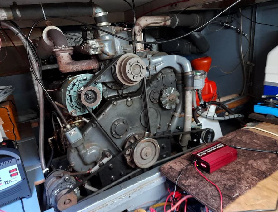 The engine is closed circuit fresh water cooled, with 'Keel cooling' pipework on each side of the hull bottom.