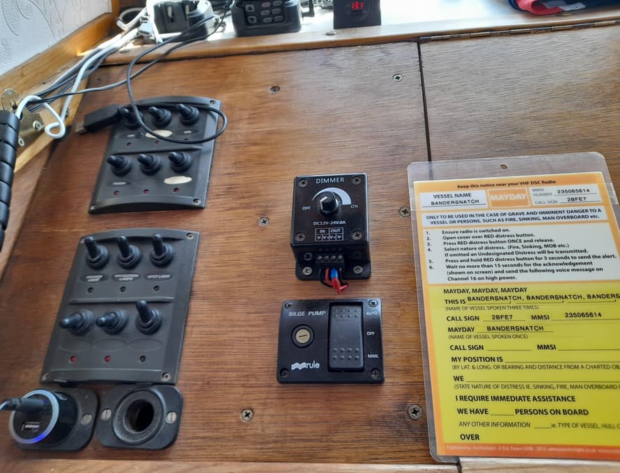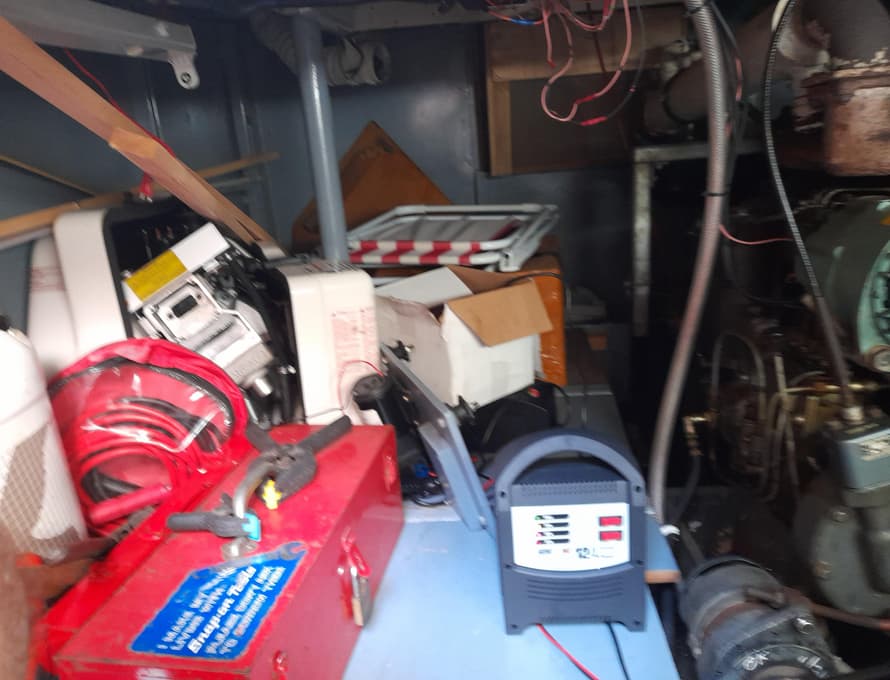 A Fisher Panda diesel-driven generator is installed in a soundproofed housing to port in the engine bay area. Water cooled with wet exhaust discharge through the port topside.