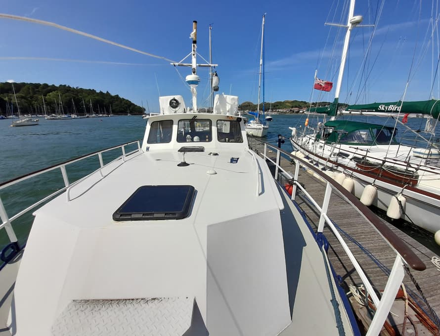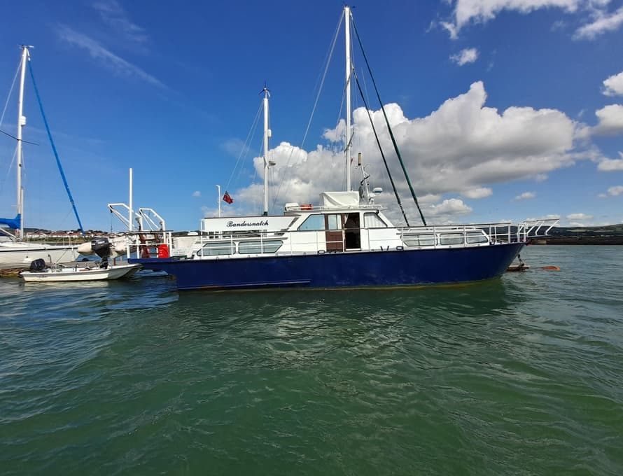 De Groot Palma 45 single screw motor cruiser, built by P.G Steelcraft (UK) in the late 1970s, exact year unknown.