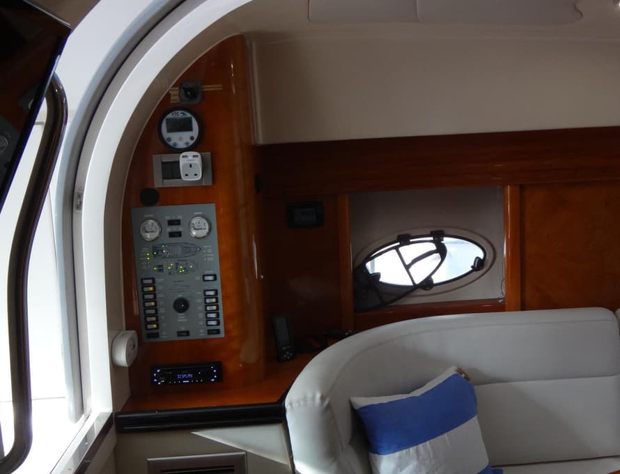 The engines have completed 895 hours on the port engine and 873 on the starboard engine. The engines have been regularly maintained during her present ownership with the most recent in February 2024. Her starboard sterndrive was completely replaced in 2022 following an incident with a submerged object. Her port sterndrive was stripped and overhauled in late 2022 as a preventative measure.
