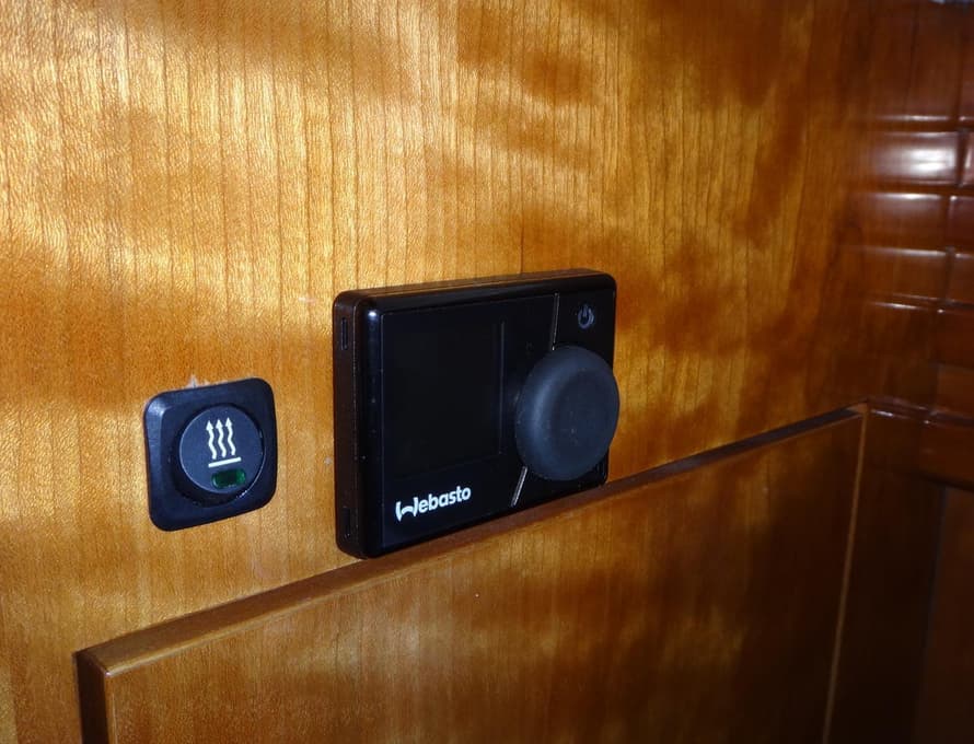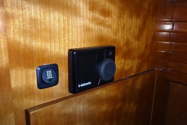 Ensuite owners cabin with double berth and a guest cabin that can be used as two singles or another double with use of an infill. Cleverly laid out galley with induction hob and fridge. Comes complete with both reverse cycle air conditioning and Webasto heating.