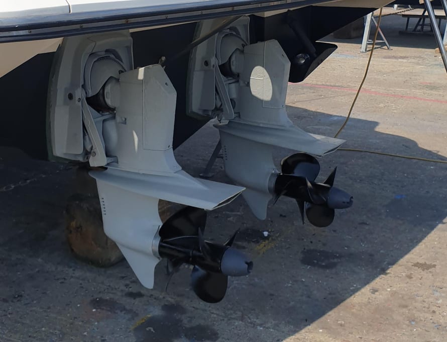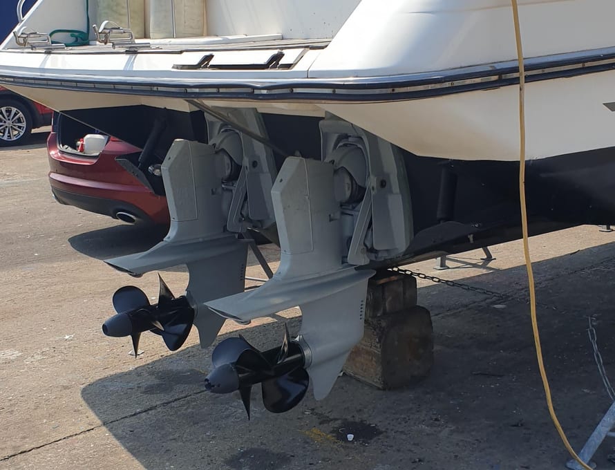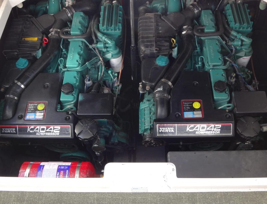 Vessel is powered by twin Volvo Penta KAD42A inboard diesels with Duo-prop sterndrives. The engines are housed beneath the rear cockpit and are accessed via a hydraulically driven hatch. Lots of space for servicing and daily checks.