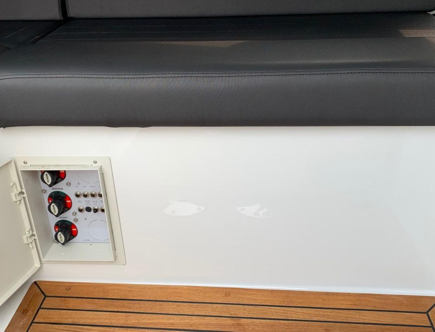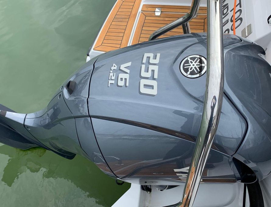 Powered by an upgraded 250V6 4.2 Litre Yamaha, this boat combines performance, practicality and comfort. With her generous cockpit space she makes an excellent day/weekender for the whole family to enjoy.
