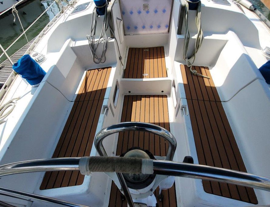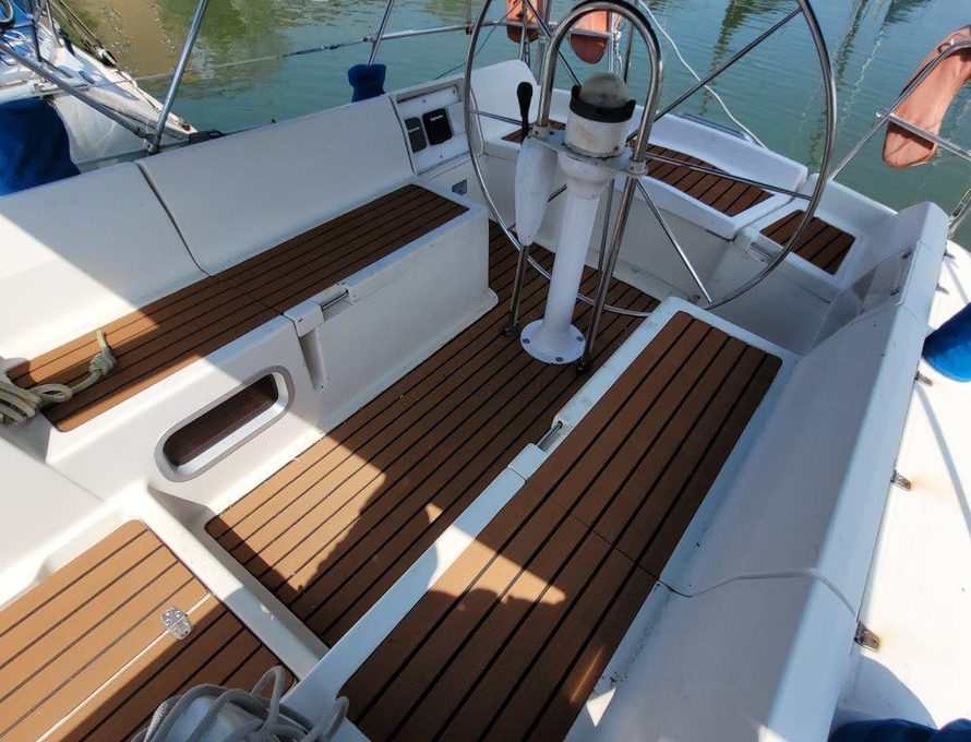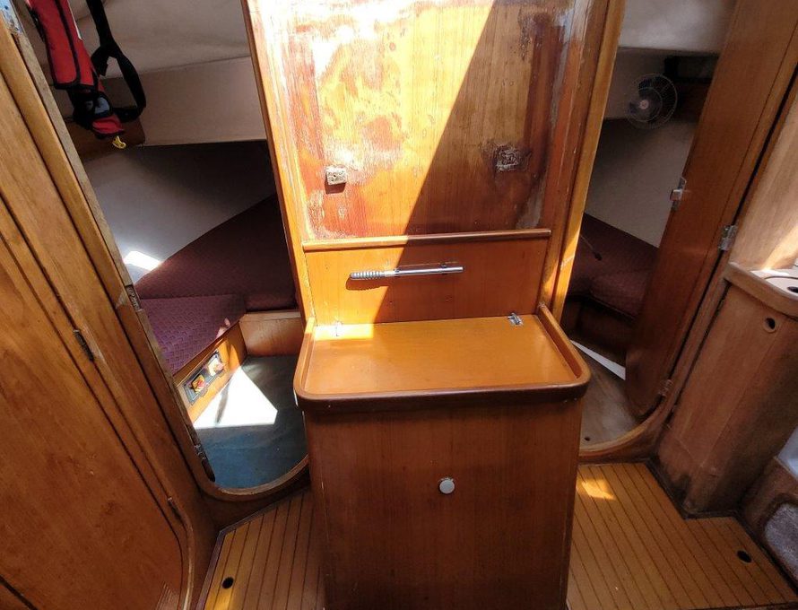 2019 Headliners repaired, two heads, four cabins, cockpit door/companionway replaced and varnished, new shower mount at stern varnished, "Ambrosia" wooden board sanded and re-varnished