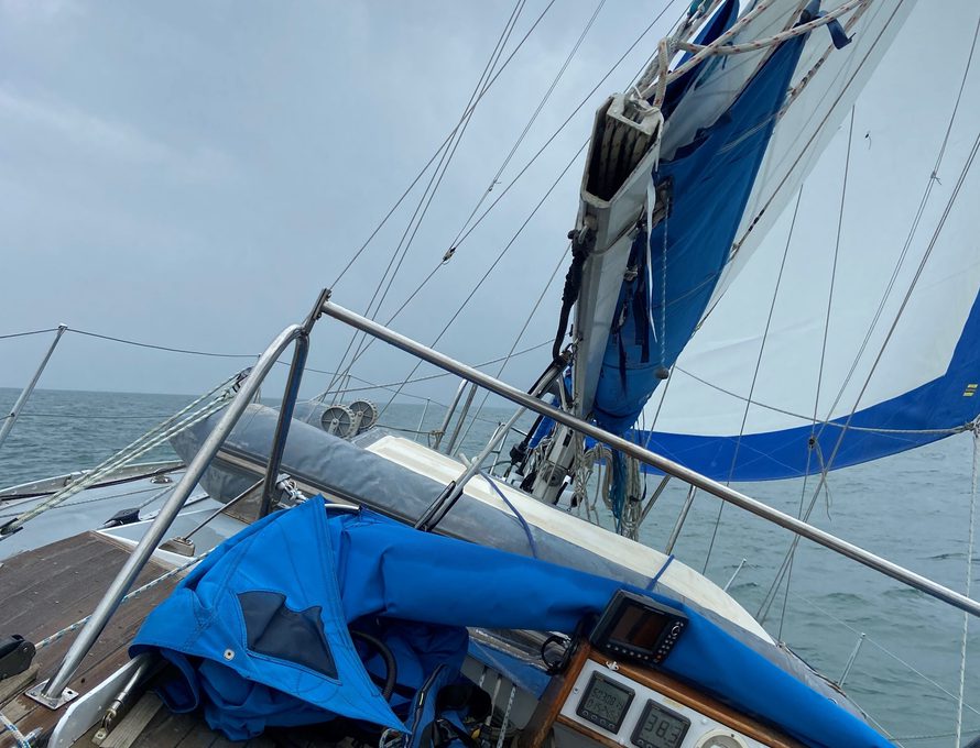 Slab reefing to fully battened mainsail new 2018 laundered 2022.