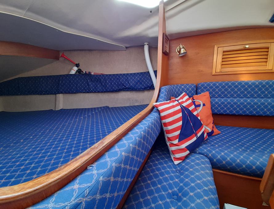 The Hunter Channel 27 offers six berths across two cabins with 2X doubles and 2X singles.