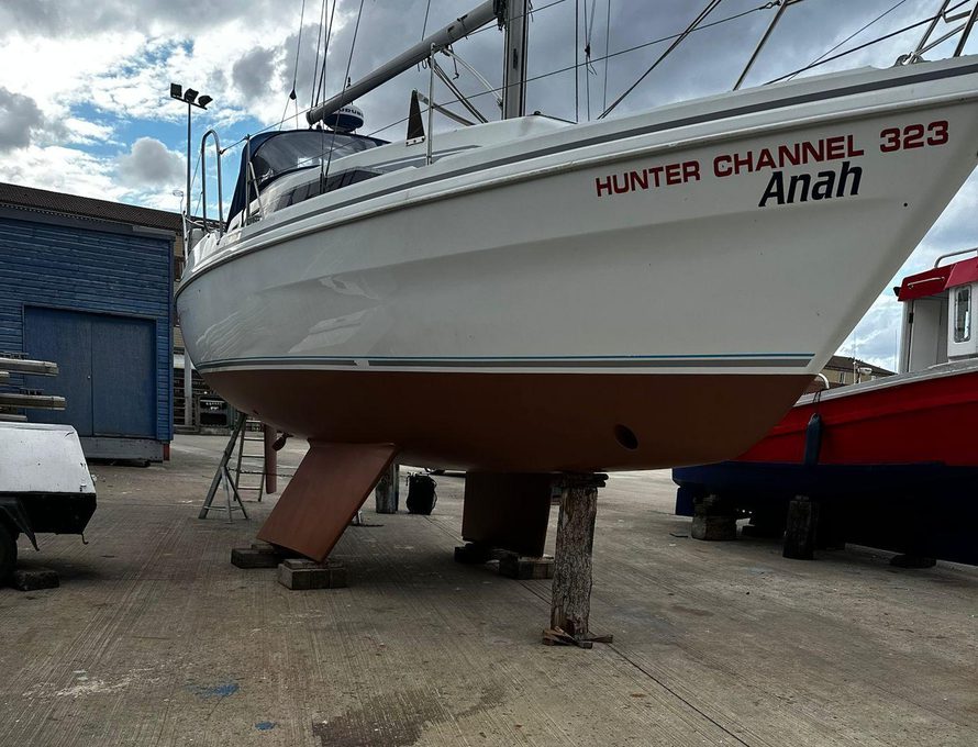 Beautiful example of the highly desirable Hunter Channel 323. These boats have a bit of a cult following due to the easy handling qualities and the quality of the fit out below decks. This is a bilge keeled version which gives you freedom to explore the more remote and shallower locations of our beautiful island. This was the London Boat Show boat so not home completed. She has been well maintained by her current owners who have had her since 2005. Big appeals on this particular model is the copper coated hull, larger 21hp Nanni providing hot water and the remote controlled bow thruster. She is very clean and tidy down below with berth for 7 over two cabins and saloon. Recently serviced and recently ashore for a fresh application of copper coat.