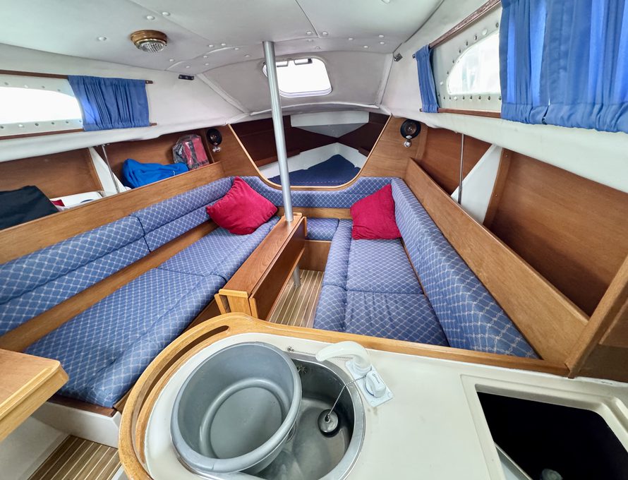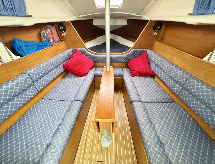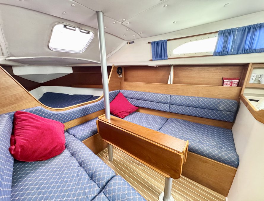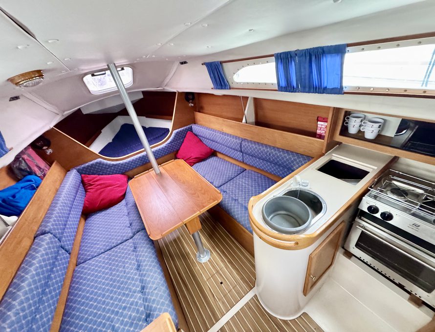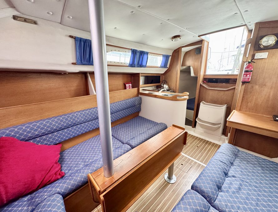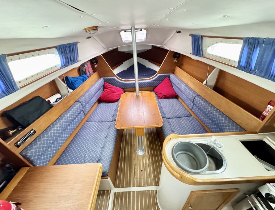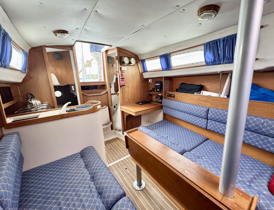 Five berths in open plan saloon / fore cabin plus separate aft cabin