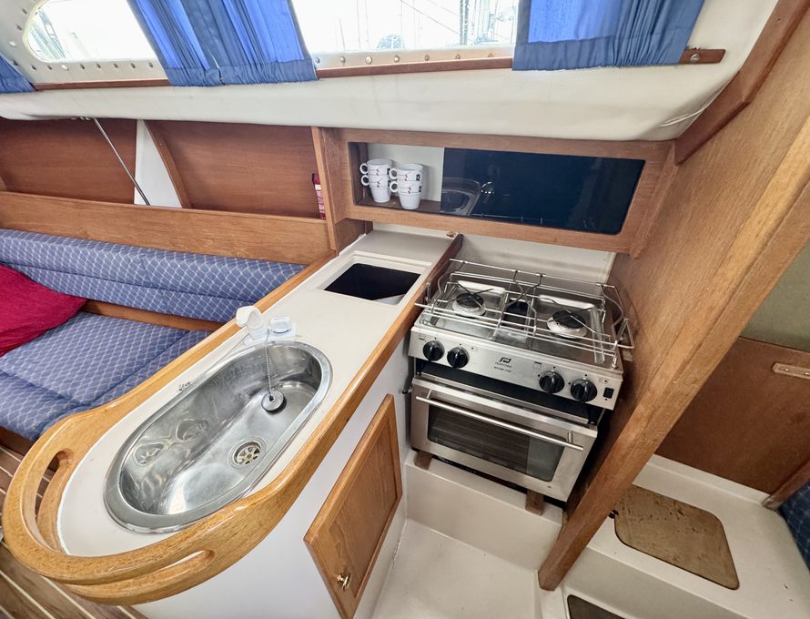 Galley with Plastimo Neptune 2500, two-burner gas hob and oven