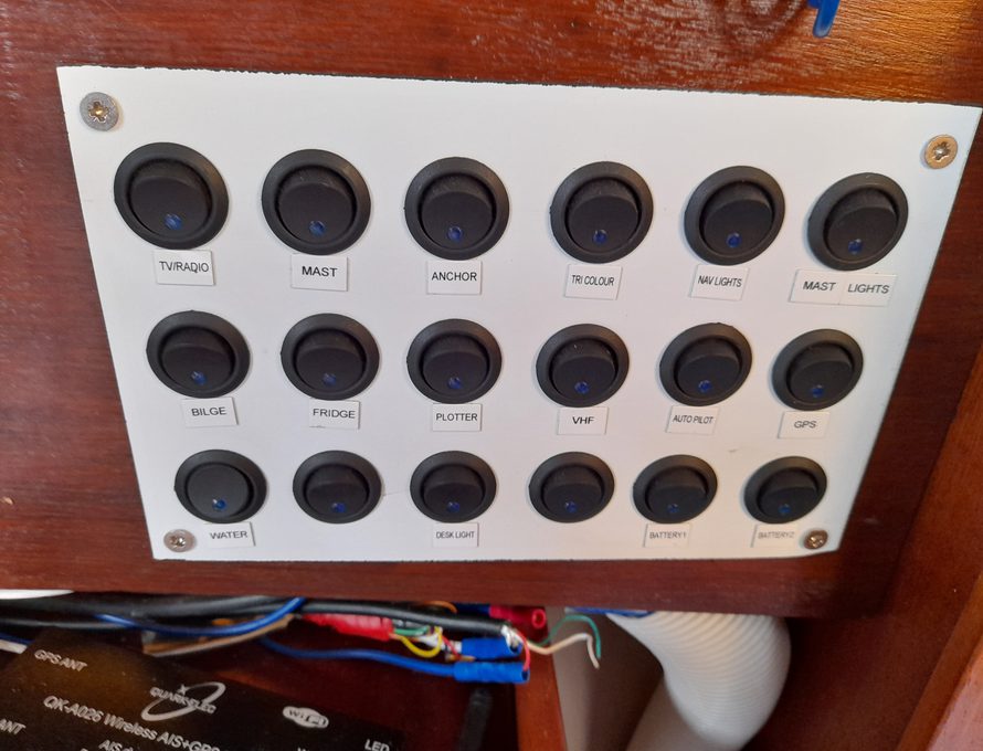 12v system rewired in 2022 to include navigation lights, fuse boxes, switches, and USB sockets