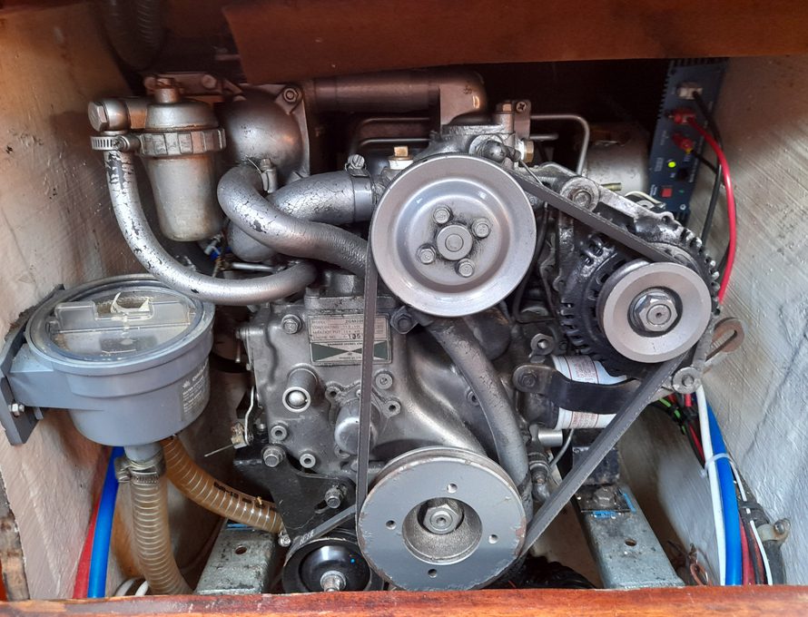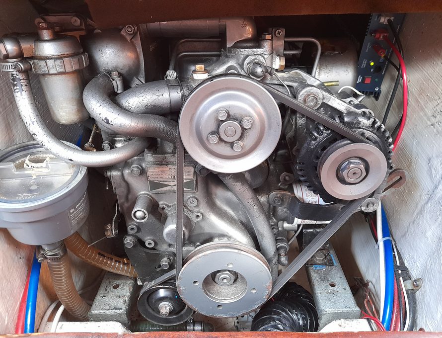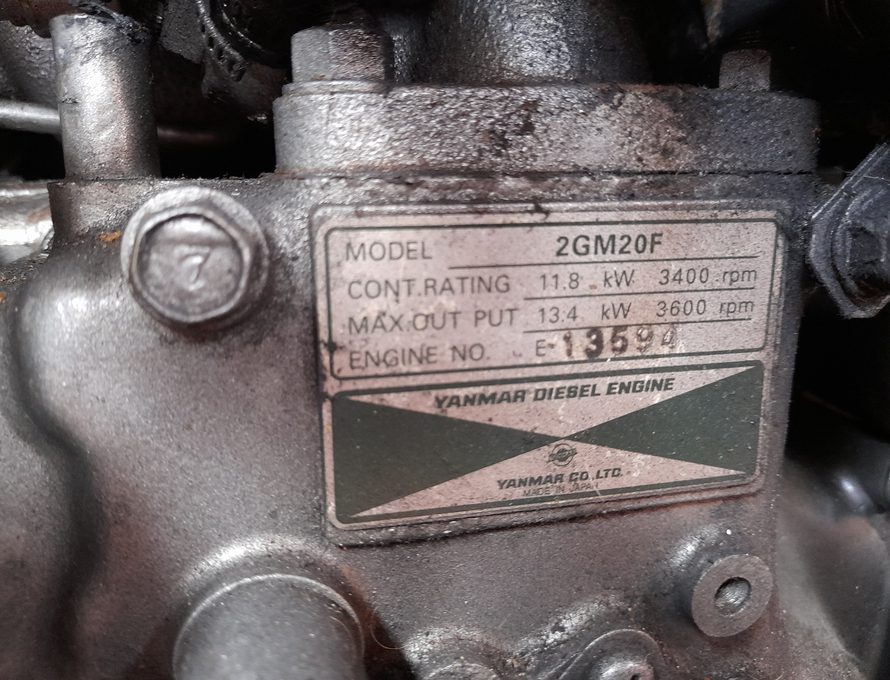 Yanmar 2GM20 20hp diesel engine, shaft drive to a 3-bladed propeller.