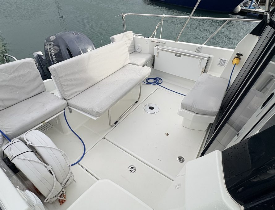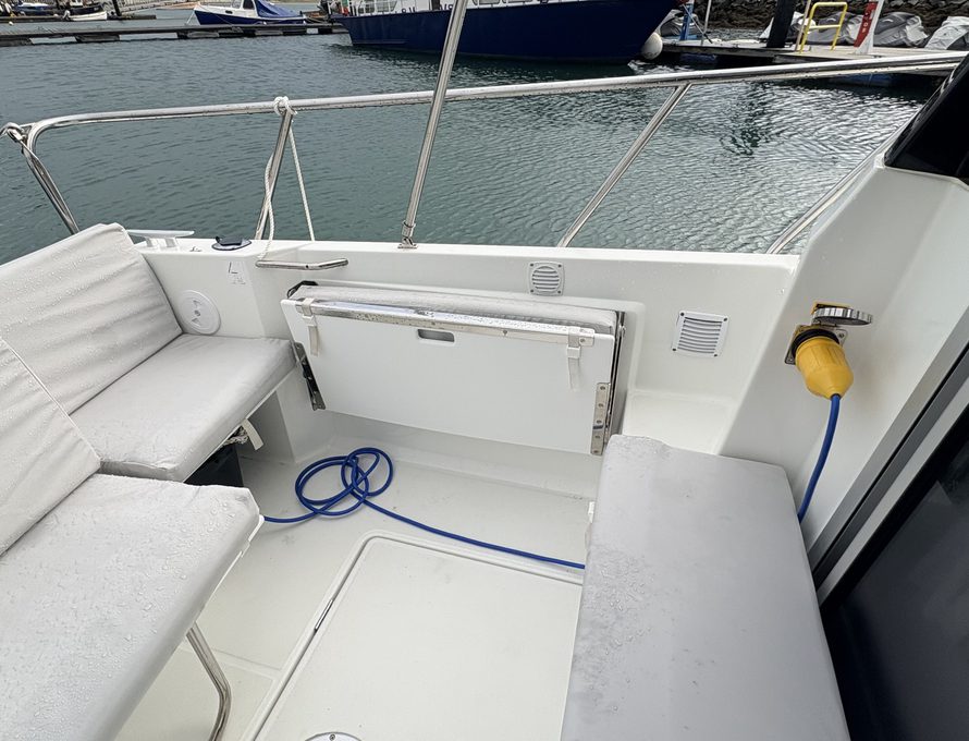 Sliding glass doors provide access from the wheelhouse into the large spacious cockpit. The u-shaped cockpit seating is an extra option which allows the conversion to a sun pad, perfect when enjoying those sunny days out on the water or when relaxing with friends and family.