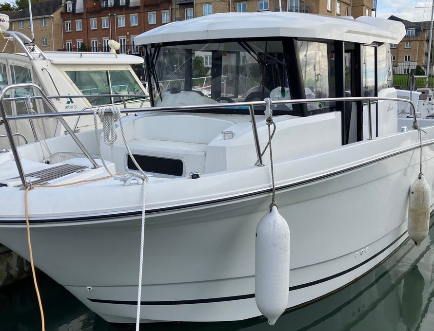 With one owner from new, Dimo is a fantastic example of the Jeanneau Merry Fisher 875 Marlin. An instant hit with fishermen, the 875 features a central wheelhouse with dual side decks and a level cockpit, also making them excellent utility boats ideal for windsurfing, canoeing, and SUP enthusiasts thanks to the increased deck storage.
