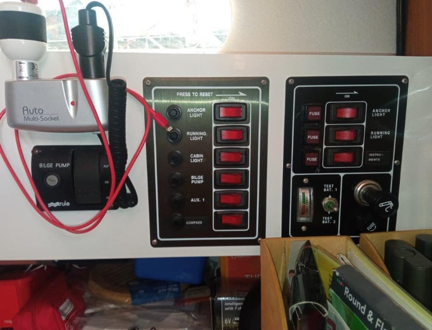 Phone Charge station, Cd/Radio, Vhf Radio, Engine Guages and Distribution boards