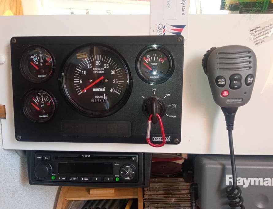Vetus Revs, Temp, Oil pressure and Volt gauges at Nav station
