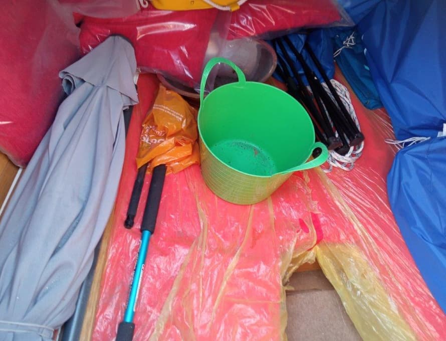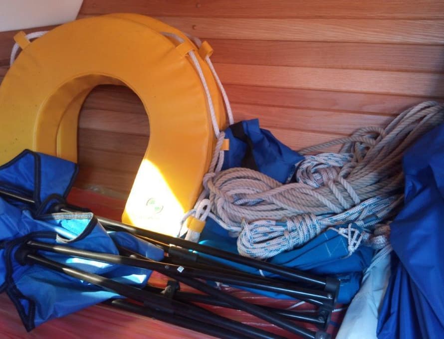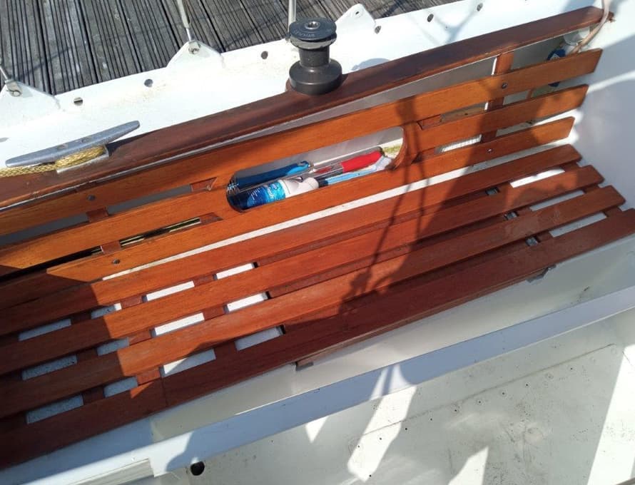 Side seats with timber boards and fibreglass covers