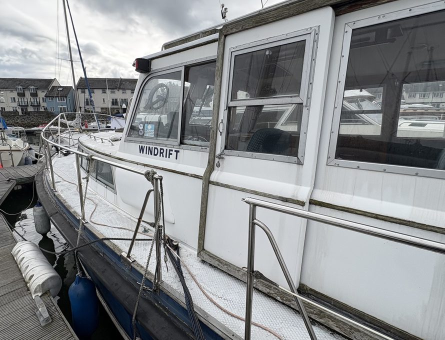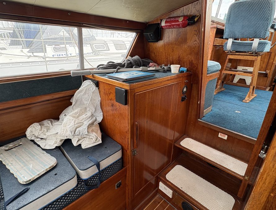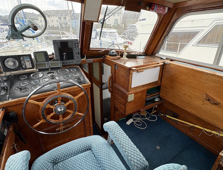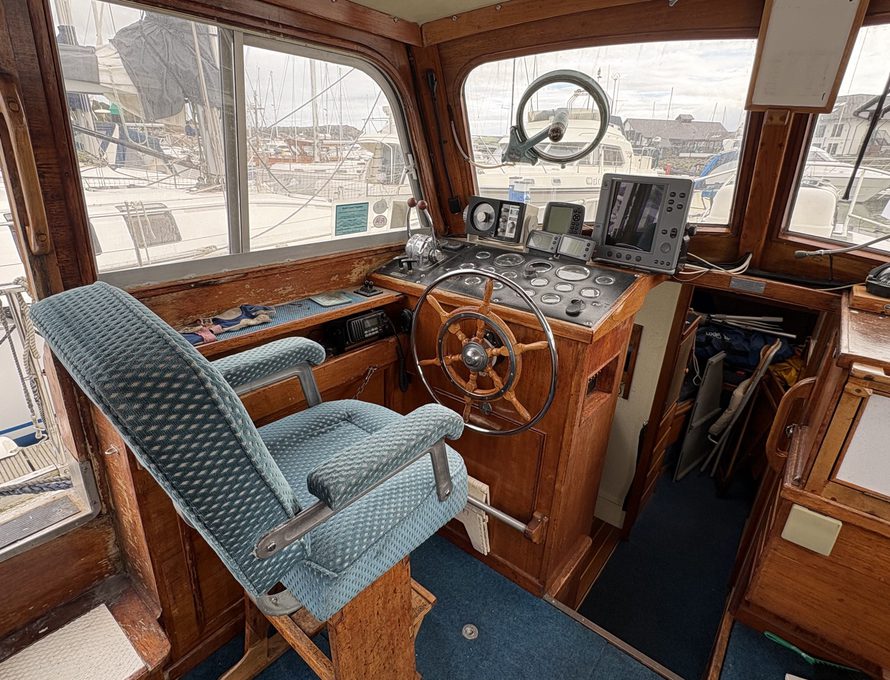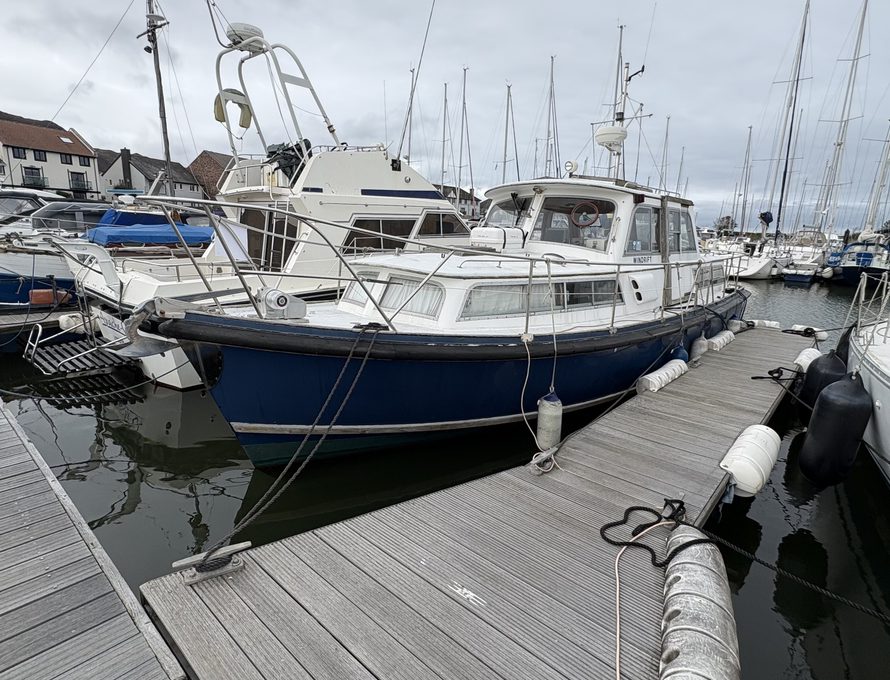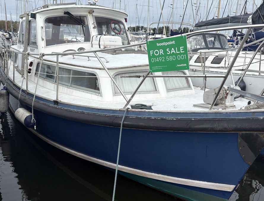 This classic vessel from the Nelson family, built by James & Caddy, offers space, performance, and the renowned reliability associated with the brand. Step aboard to find a spacious cabin boasting a generous 2 meters of headroom. The Nelson Weymouth 32 is celebrated for her seaworthiness; powered by twin Perkins 6354 HT 145hp diesel engines, she cruises comfortably on the plane at 12 knots and can reach up to 17 knots. With a displacement of 10,000 kilograms, she delivers solid stability whether navigating coastal waters or contemplating longer passages. Currently afloat at Conwy Marina, North Wales, she has been serviced annually by her owner. In 2020, her hull was re-laminated and copper-coated by Dickies of Bangor, and she was last surveyed in the same year. While mechanically sound and fundamentally robust, this vessel is beginning to show her age and would benefit from some cosmetic attention to bring her back to her best. Viewings by appointment.