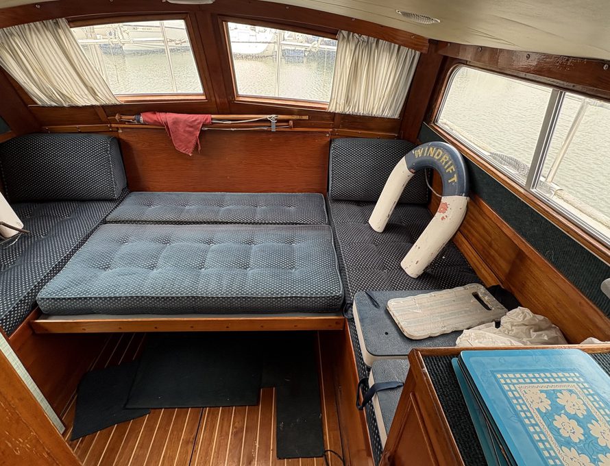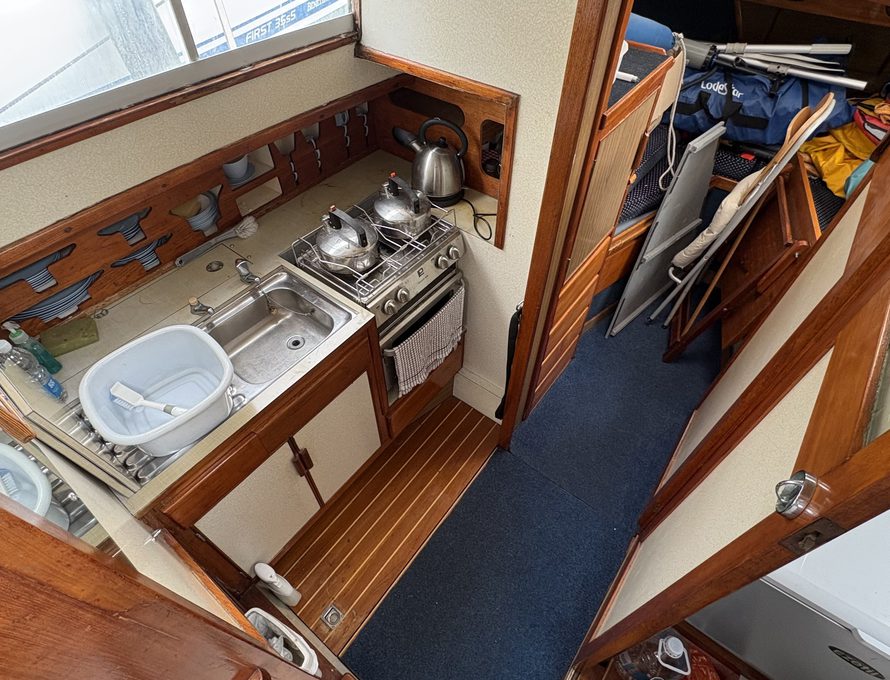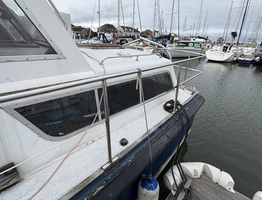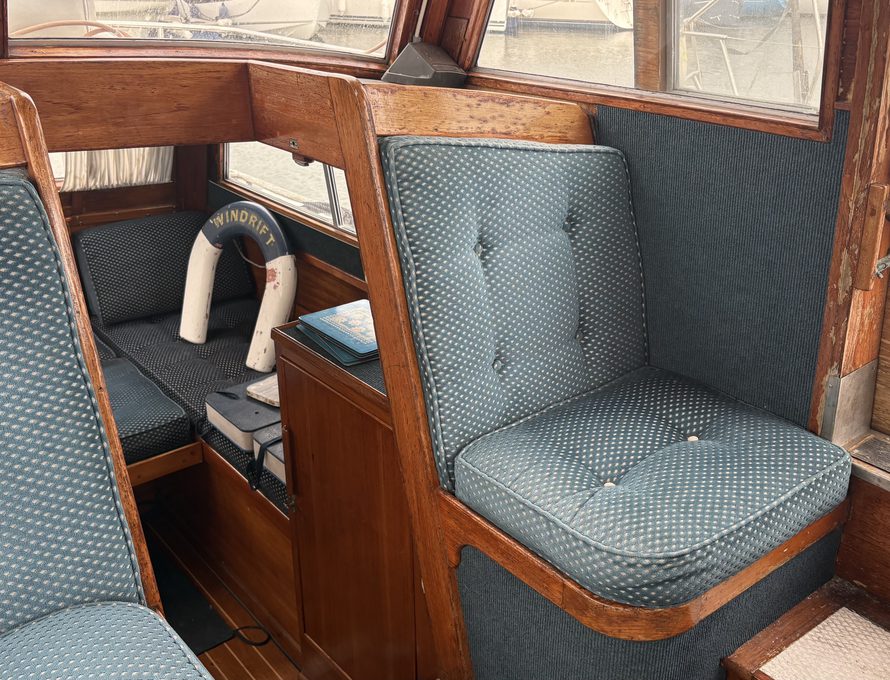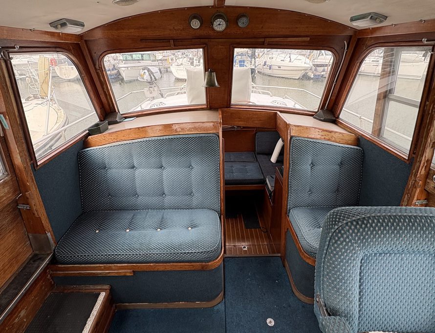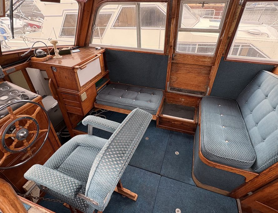 This classic vessel from the Nelson family, built by James & Caddy, offers space, performance, and the renowned reliability associated with the brand. Step aboard to find a spacious cabin boasting a generous 2 meters of headroom. The Nelson Weymouth 32 is celebrated for her seaworthiness; powered by twin Perkins 6354 HT 145hp diesel engines, she cruises comfortably on the plane at 12 knots and can reach up to 17 knots. With a displacement of 10,000 kilograms, she delivers solid stability whether navigating coastal waters or contemplating longer passages. Currently afloat at Conwy Marina, North Wales, she has been serviced annually by her owner. In 2020, her hull was re-laminated and copper-coated by Dickies of Bangor, and she was last surveyed in the same year. While mechanically sound and fundamentally robust, this vessel is beginning to show her age and would benefit from some cosmetic attention to bring her back to her best. Viewings by appointment.