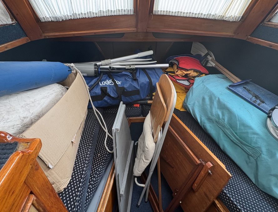FORECABIN - Fitted with a V berth (with infill to form a double berth) with stowage beneath, storage lockers and opening hatch to foredeck.