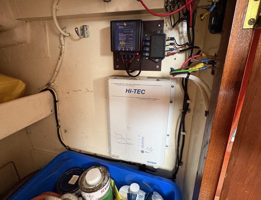 GENERAL EQUIPMENT - Pressurised hot and cold water system via a calorifier. Eberspacher diesel fired warm air heating system. Teak cabinetry throughout with carpets, cotton upholstery and complimenting curtains. JVC Stereo.