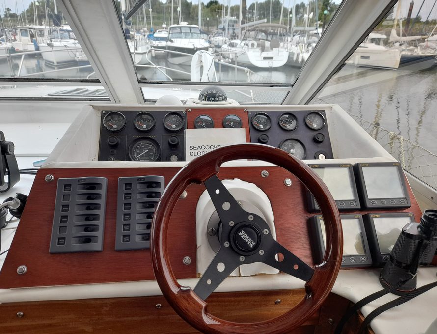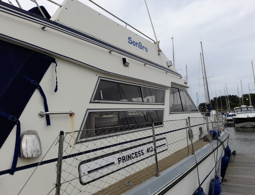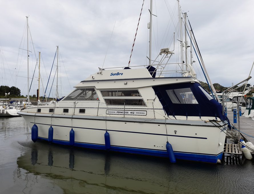 We are pleased to present 'SONBRO' a Princess 412 renowned motor cruiser with excellent sea keeping capabilities and uncompromised performance. Powered by twin Volvo Penta TAMD 60 inboards with an average cruising speed of 18 knots. Accommodation for five with good sized cockpit and additional fly bridge offering excellent visibility for the upper helm. Afloat on a berth at Conwy Marina, please contact our office to arrange a viewing.