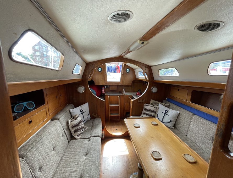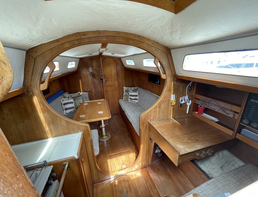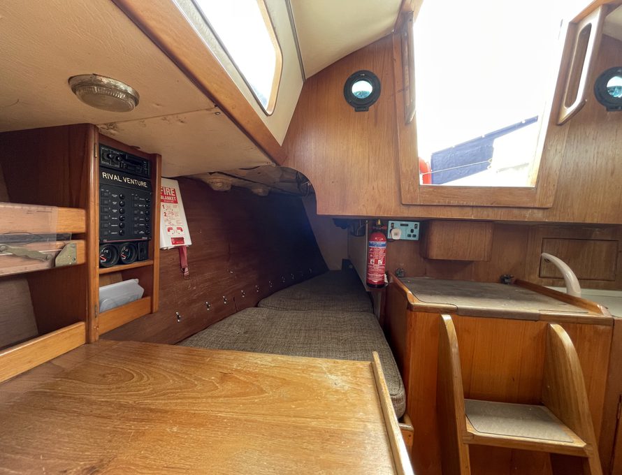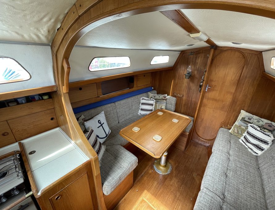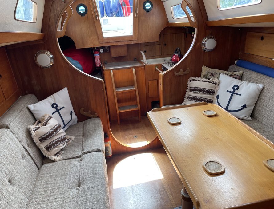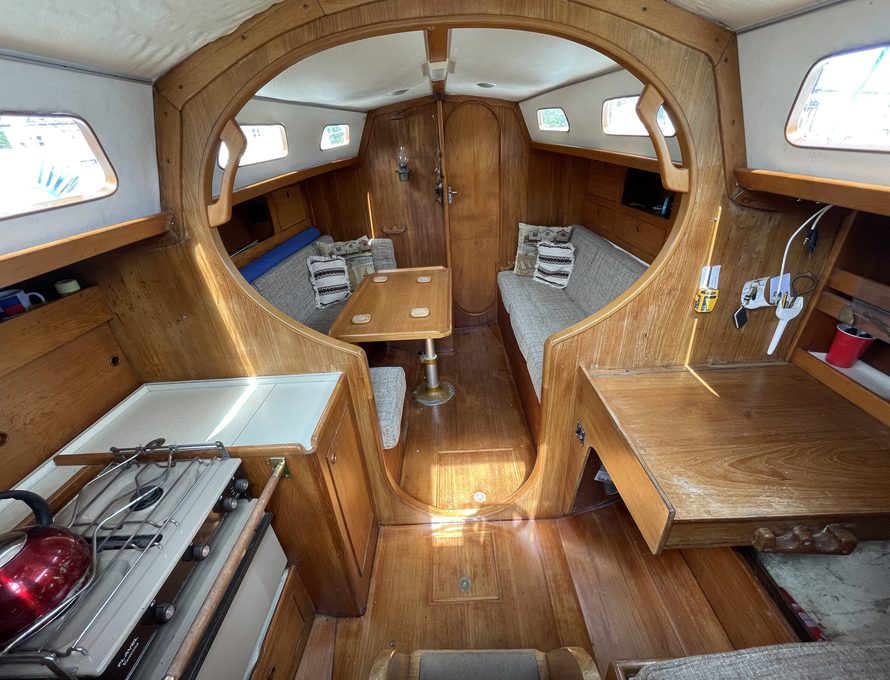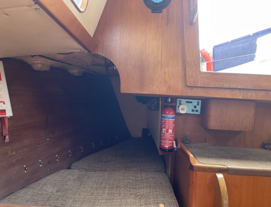 Although original, the inboard Volvo offers reliability and economy. Down below is comfortable and offers berths for 6 persons over the fore cabin and saloon.