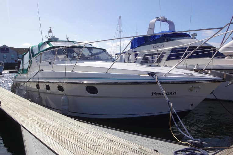 "La Diva" is a well cared for example of the ever popular Sealine 320 Statesman. Powered by twin Mercruiser D 3.6l inboard diesel engines that give a cruising speed of 18 knots and a top speed of 25 knots. The boat has a high specification including a Bow Thruster, Electric Anchor Windlass, Eberspacher Diesel Heating, Raymarine ST6000+ Autopilot, Navman Trackfish 6500 Chartplotter and Fishfinder and much more. She has a spacious accommodation layout, with a large bow master cabin, guest cabin and saloon providing six berths.