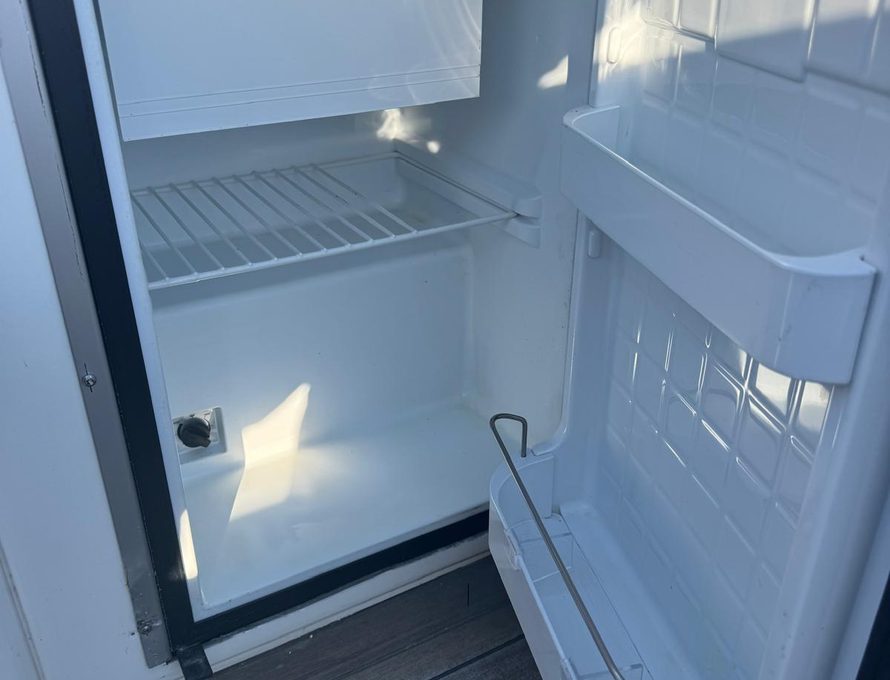 As this is the three cabin version the galley is on the port side of the saloon. There is no gas onboard this boat, so all appliances are electric. These include a 2-burner induction hob, a combi microwave oven and a large capacity front opening fridge. At this point you should remember that there are three fridges on board so more than sufficient to make long-range cruising a reality.