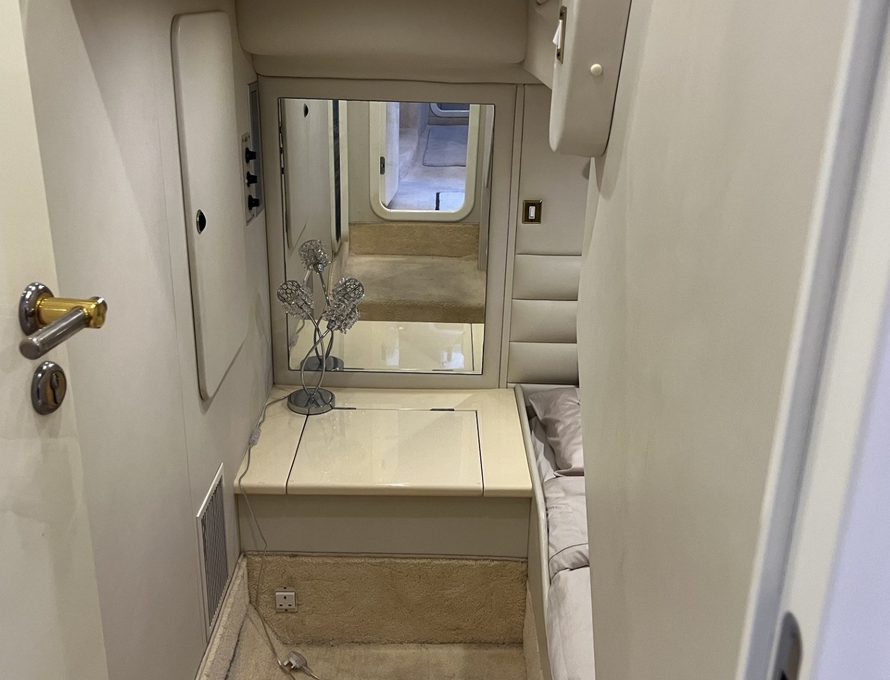 The aft cabin is on the port side and has a double berth, mirror, storage lockers and en-suite equipped with a shower, electric heads (new 2023) and opening port hole