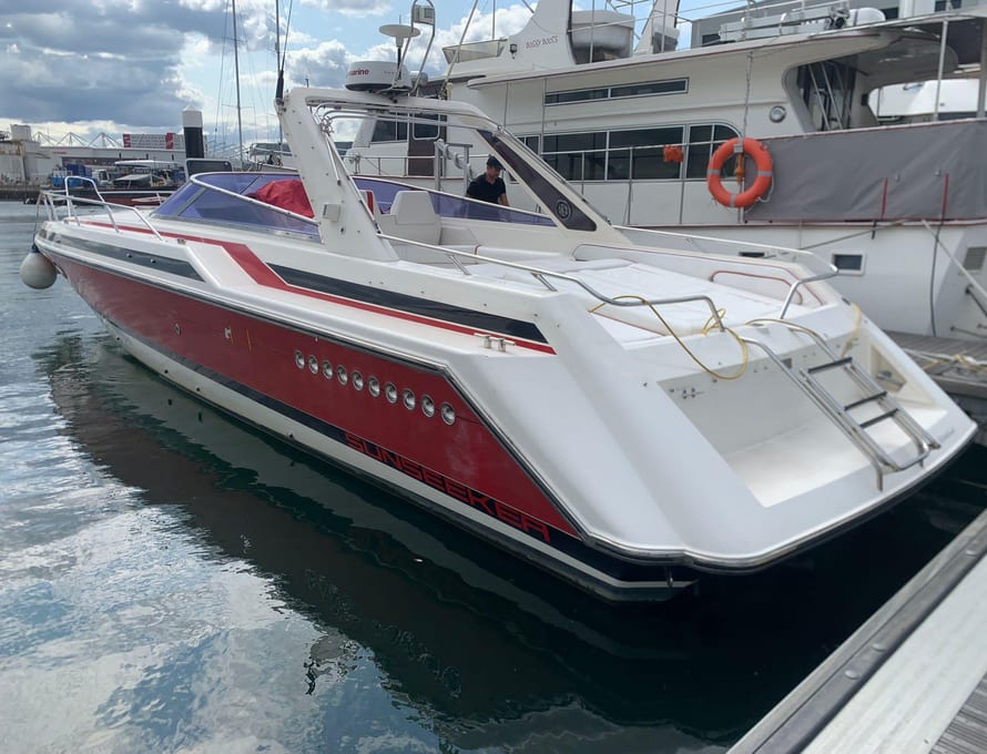 This Sunseeker Thunderhawk 43 has recently benefitted from new carpets and finishes to the cabin forward, as well as full engine services and dashboard upgrade. This classic express cruiser from Sunseeker is fitted with twin Volvo 7.4 litre V8 engines, just as she left the factory! Delivering the impressive performance and the sleek lines you'd expect from a 90's Sunseeker, she is sure to turn heads wherever she goes!