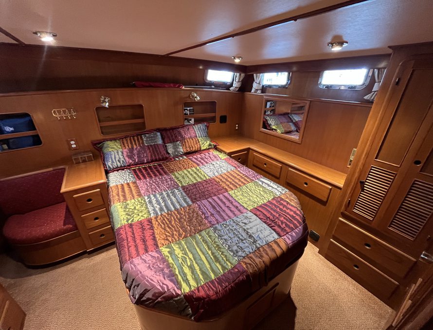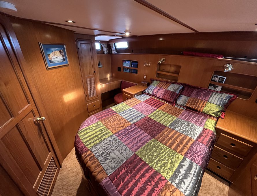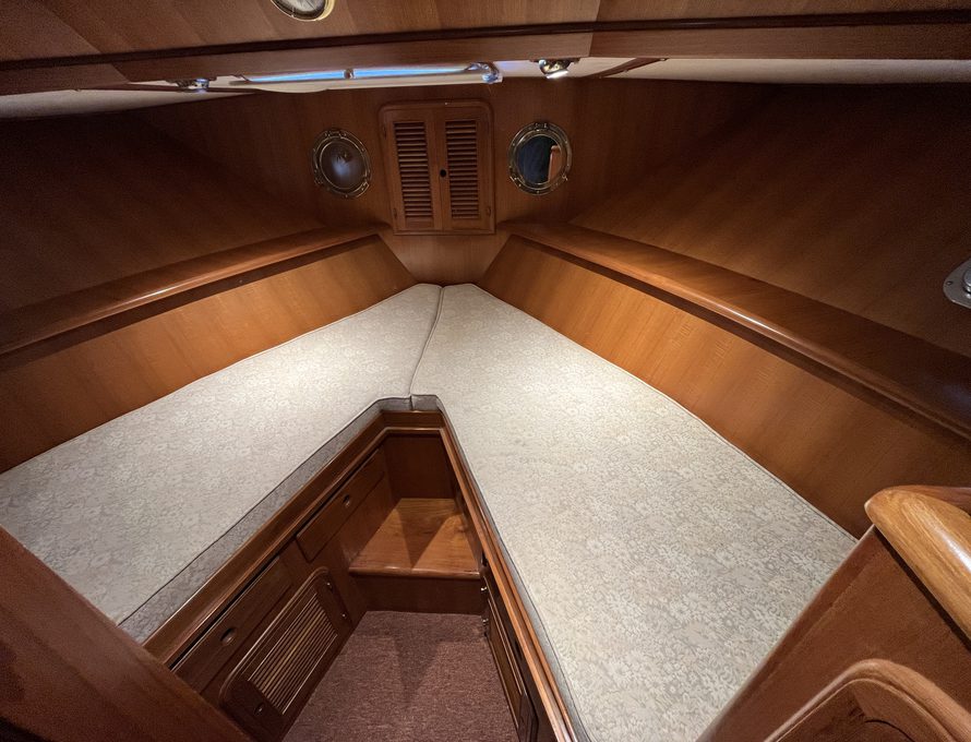 - 6 berths (Large double aft, pullman style cabin forward, forward v-berth