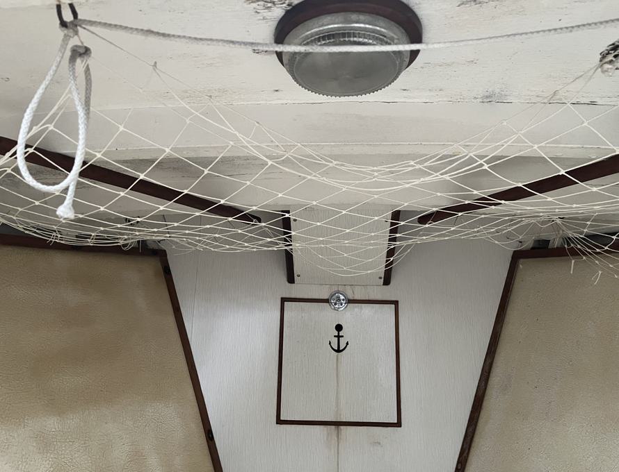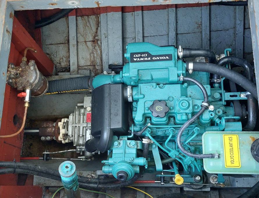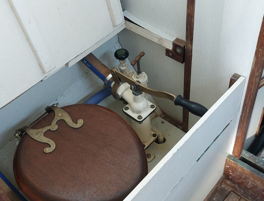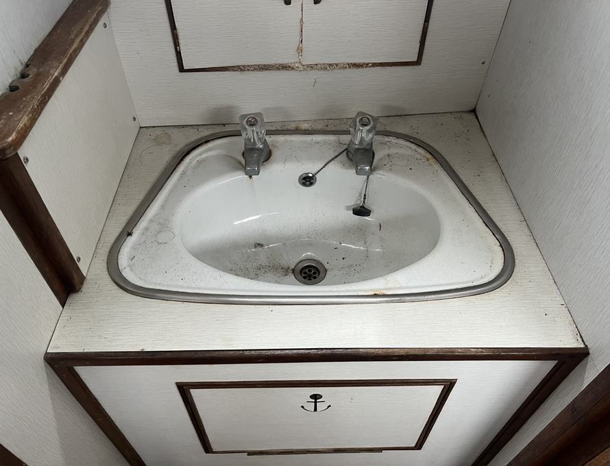 To starboard is a galley area with storage, sink and a Two burner, no pressurised alcohol stove. Aft of the galley is a pilot berth.
